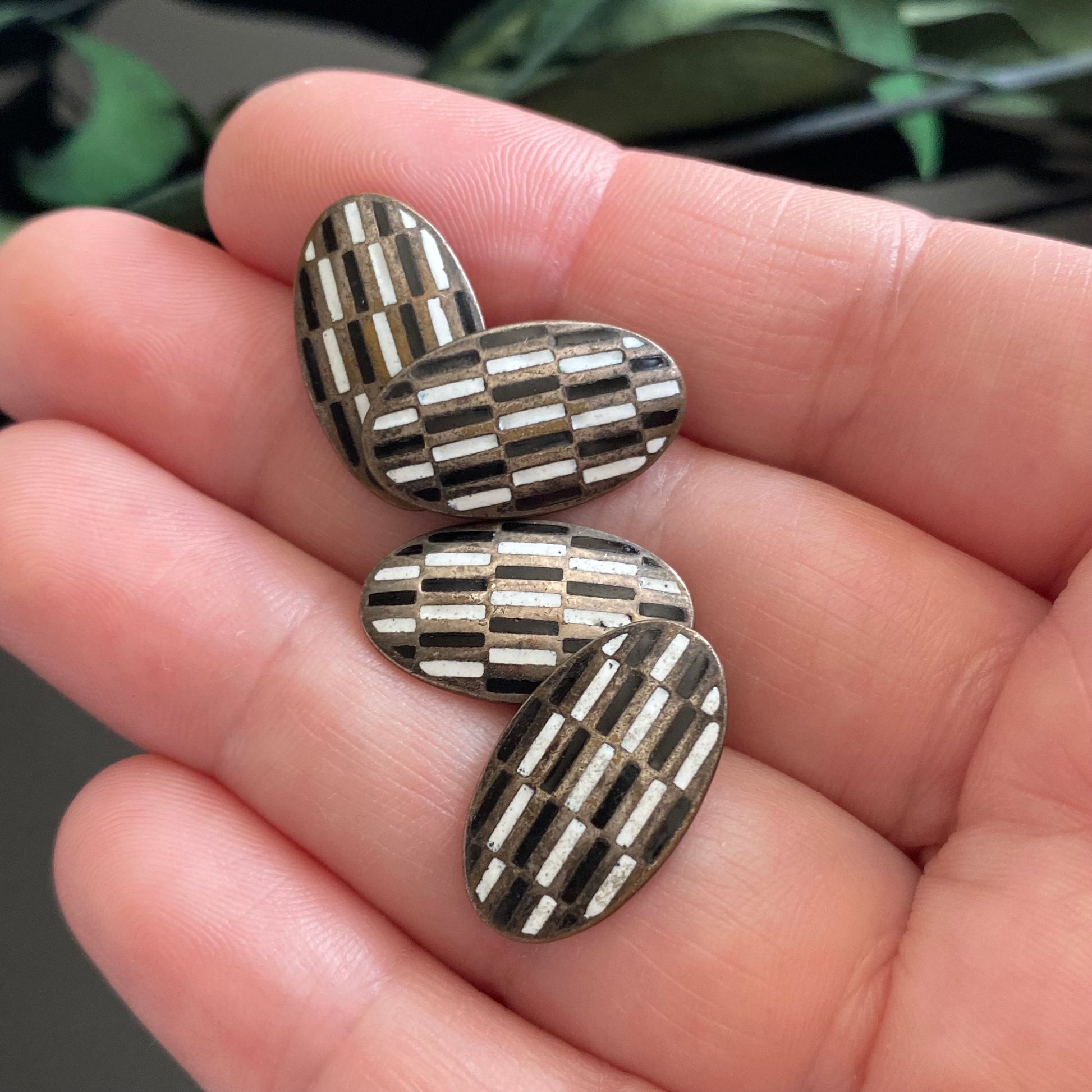 Antique Vintage Black White Checkerboard Enamel Cufflinks
