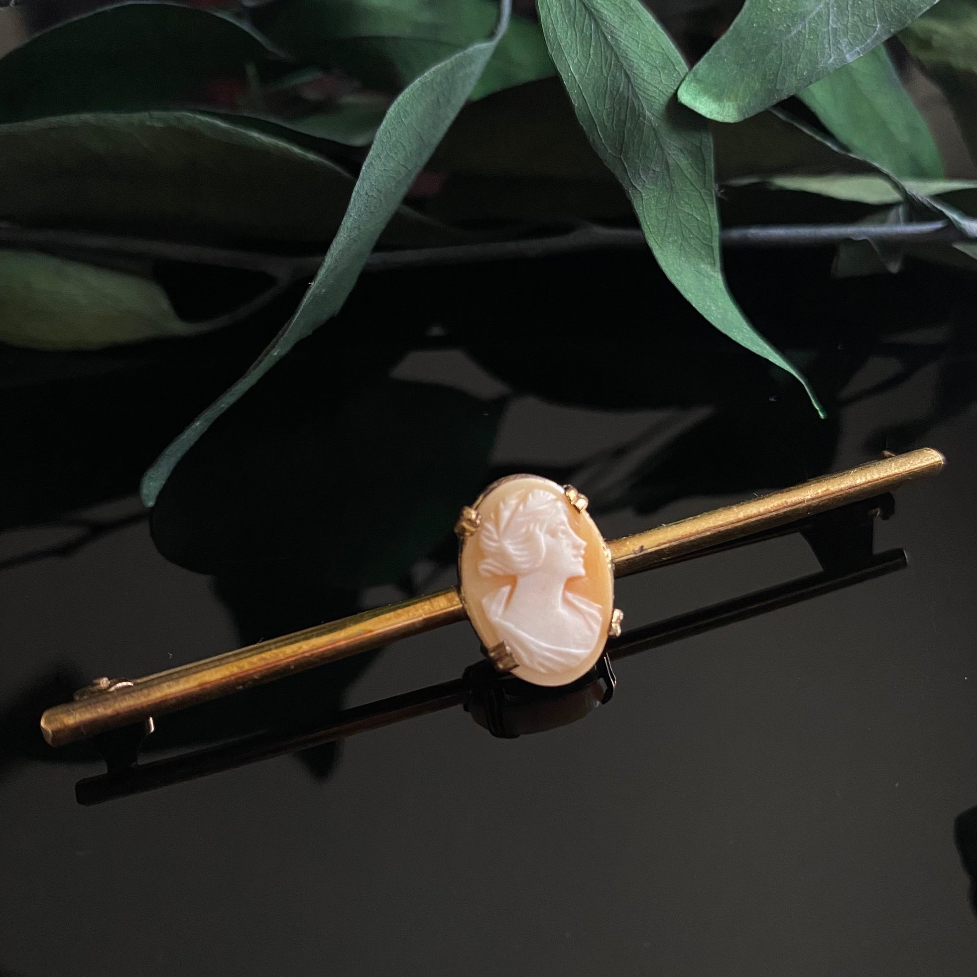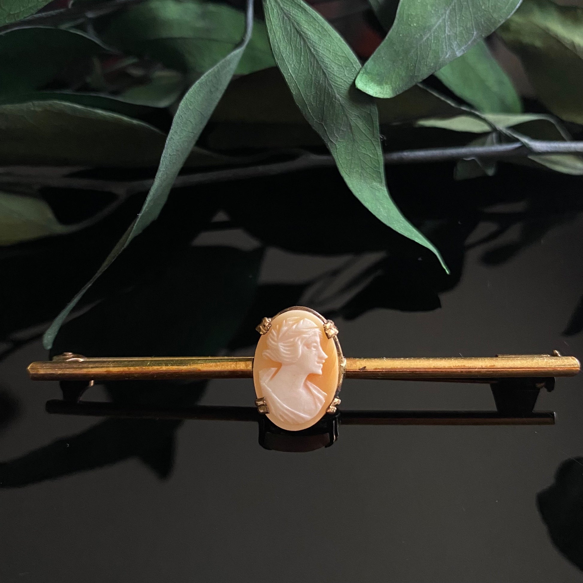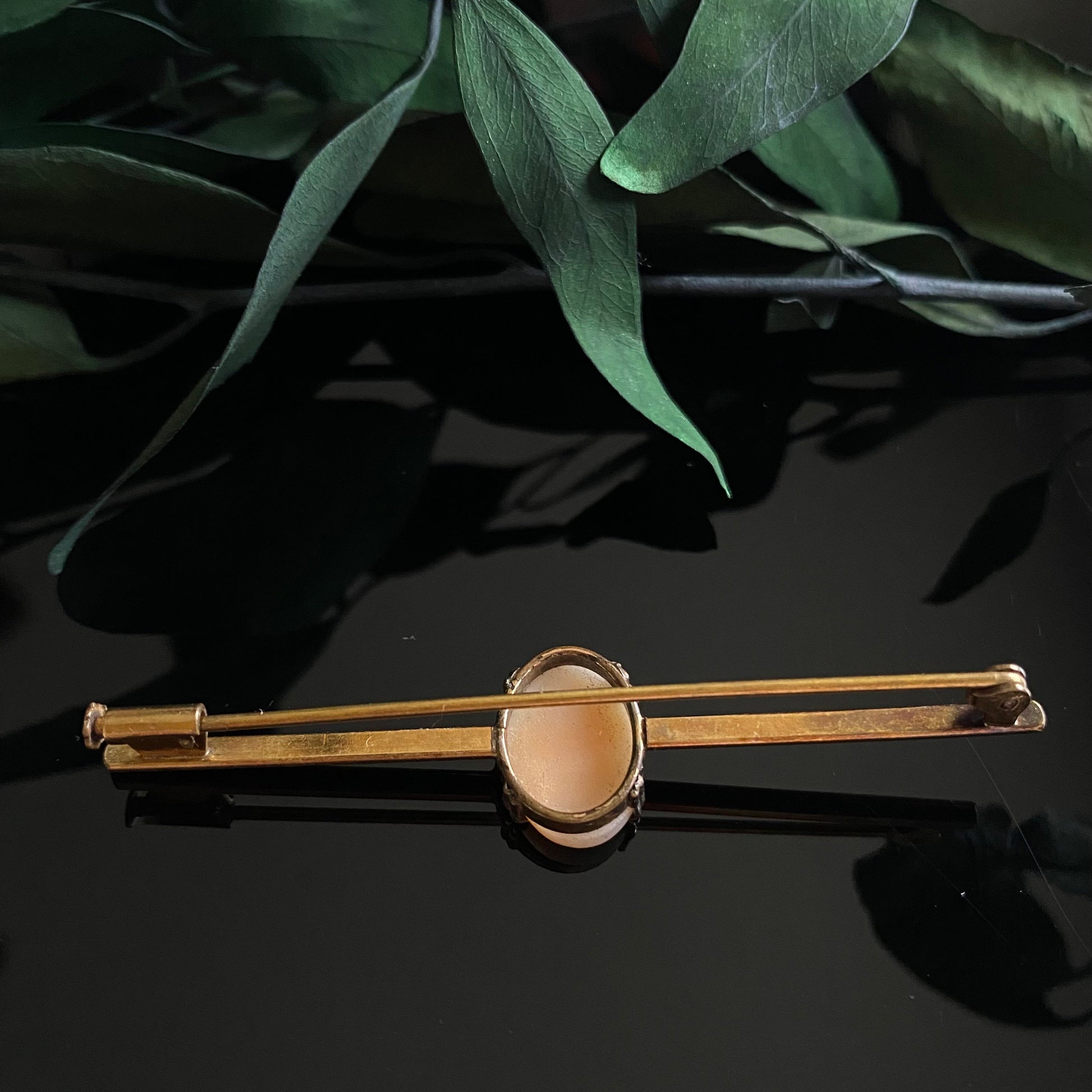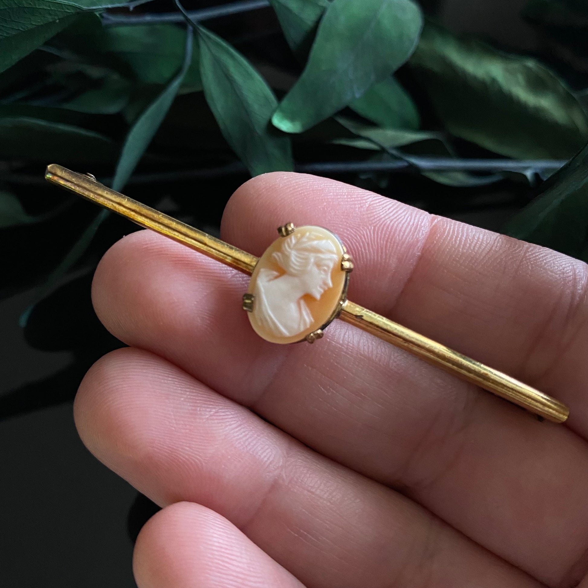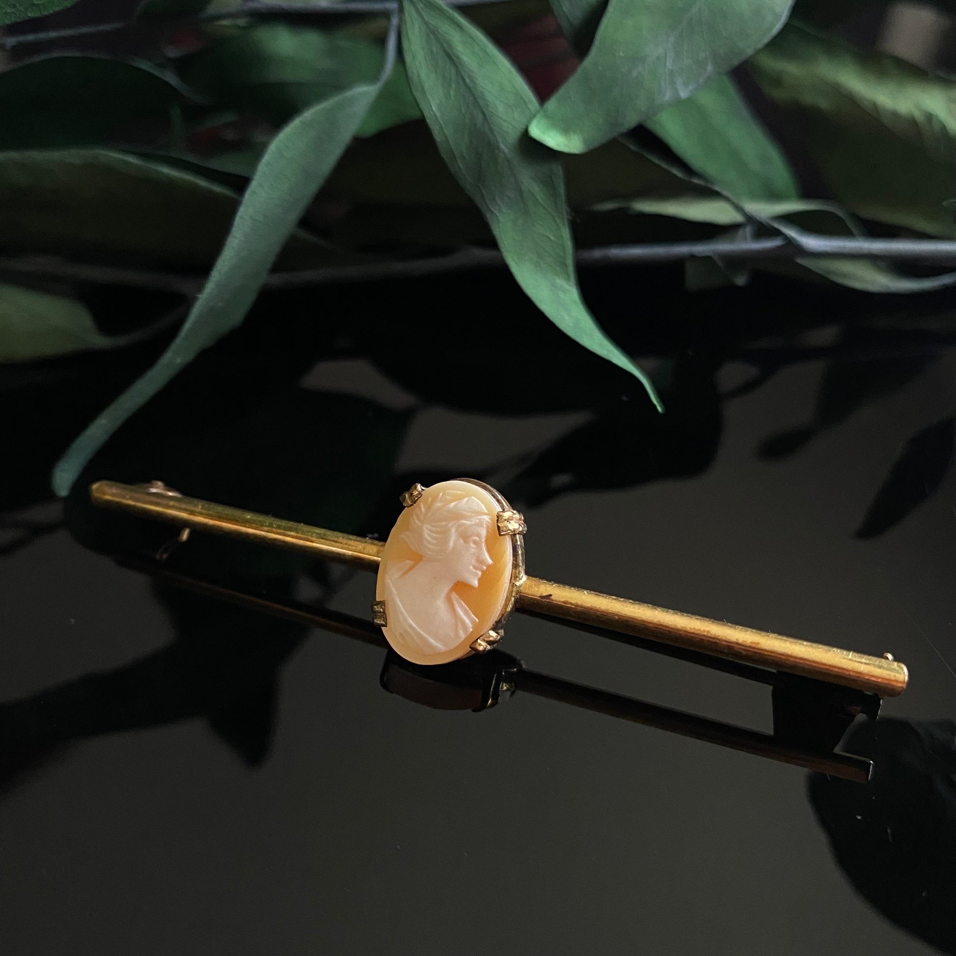 Antique Victorian or Edwardian shell cameo gold filled bar pin brooch with trombone clasp.