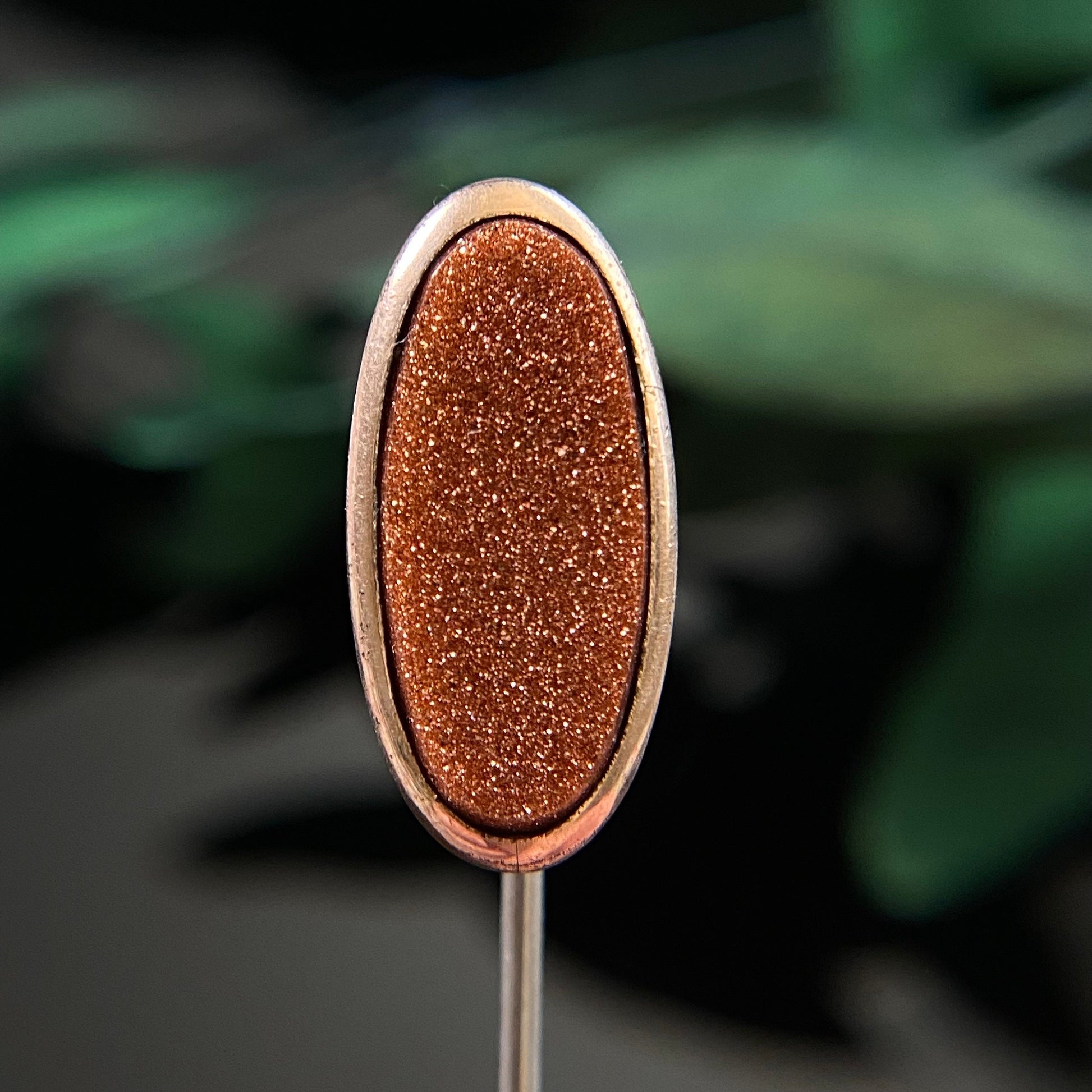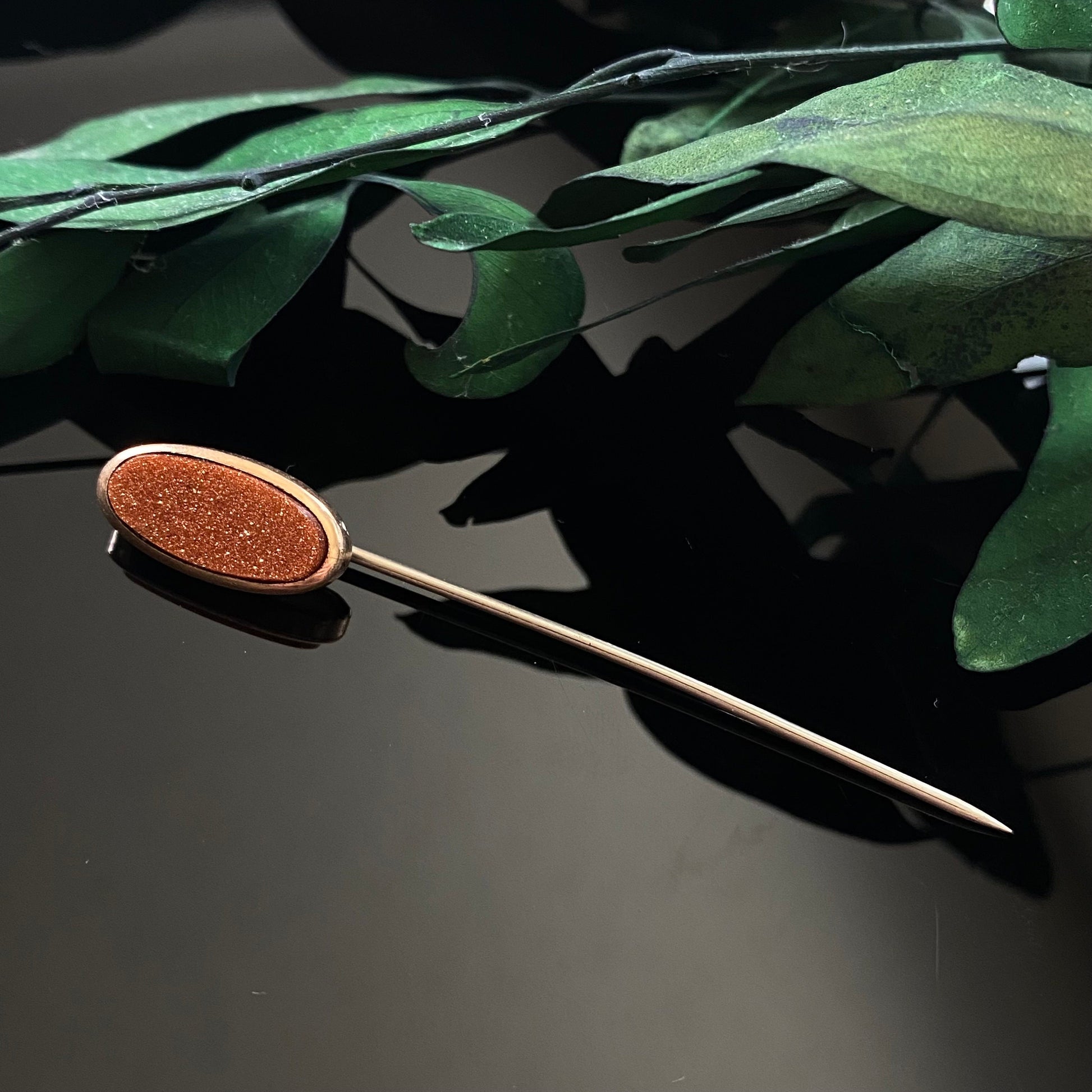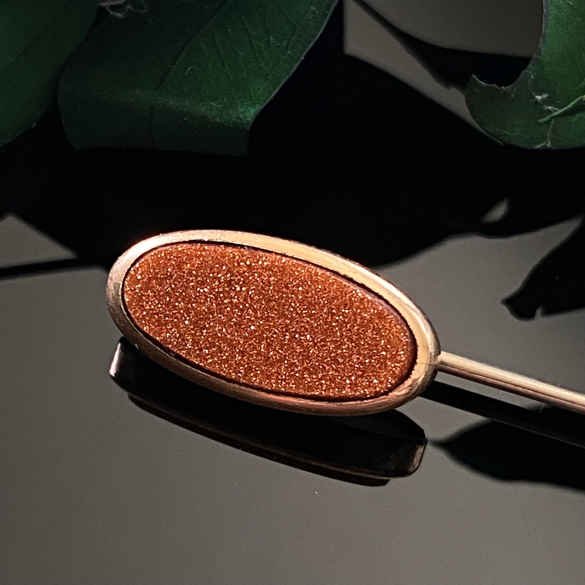 Antique Edwardian Rolled Gold Oval Goldstone Stick Pin