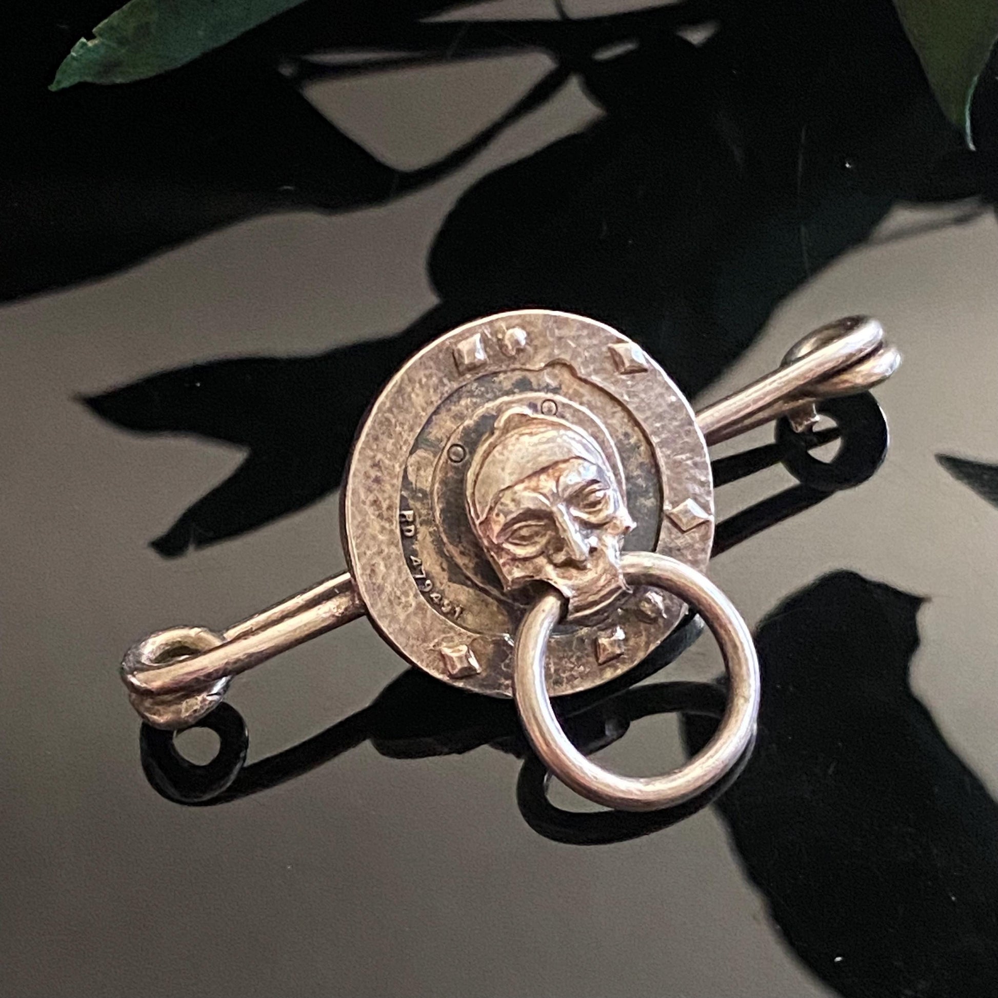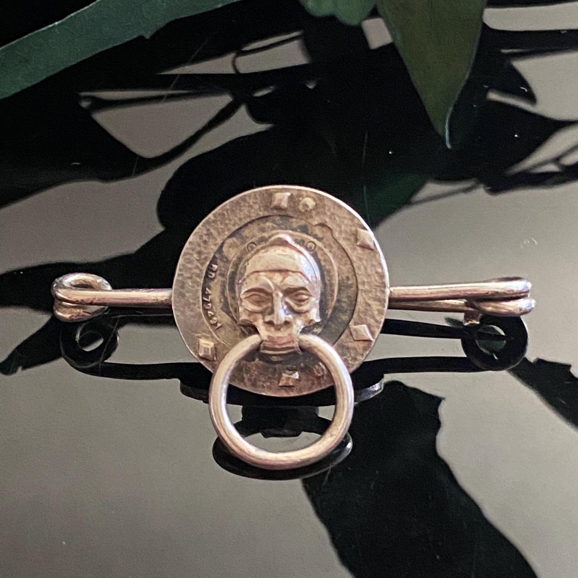 Antique Edwardian Sterling Silver Doorknocker PIn Brooch