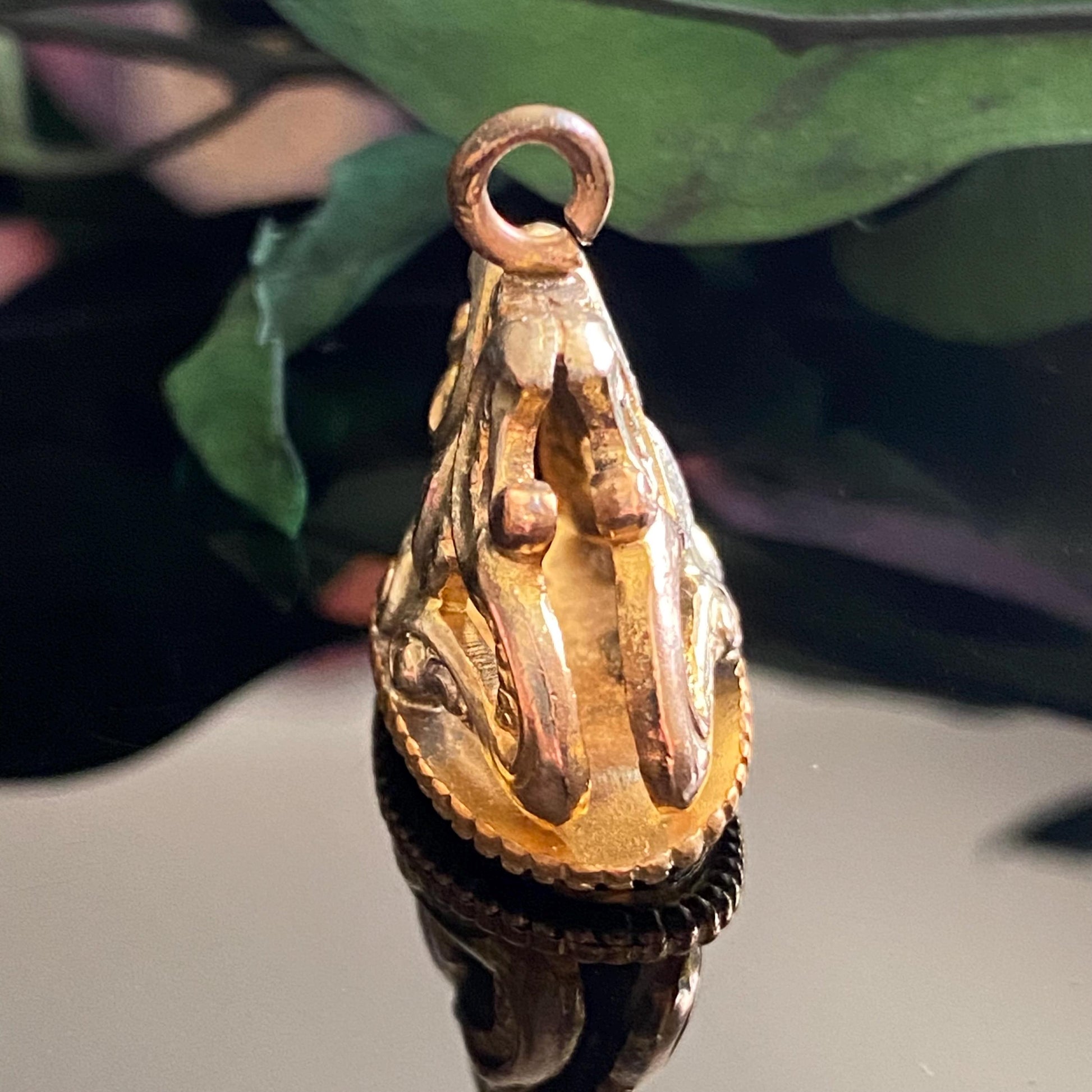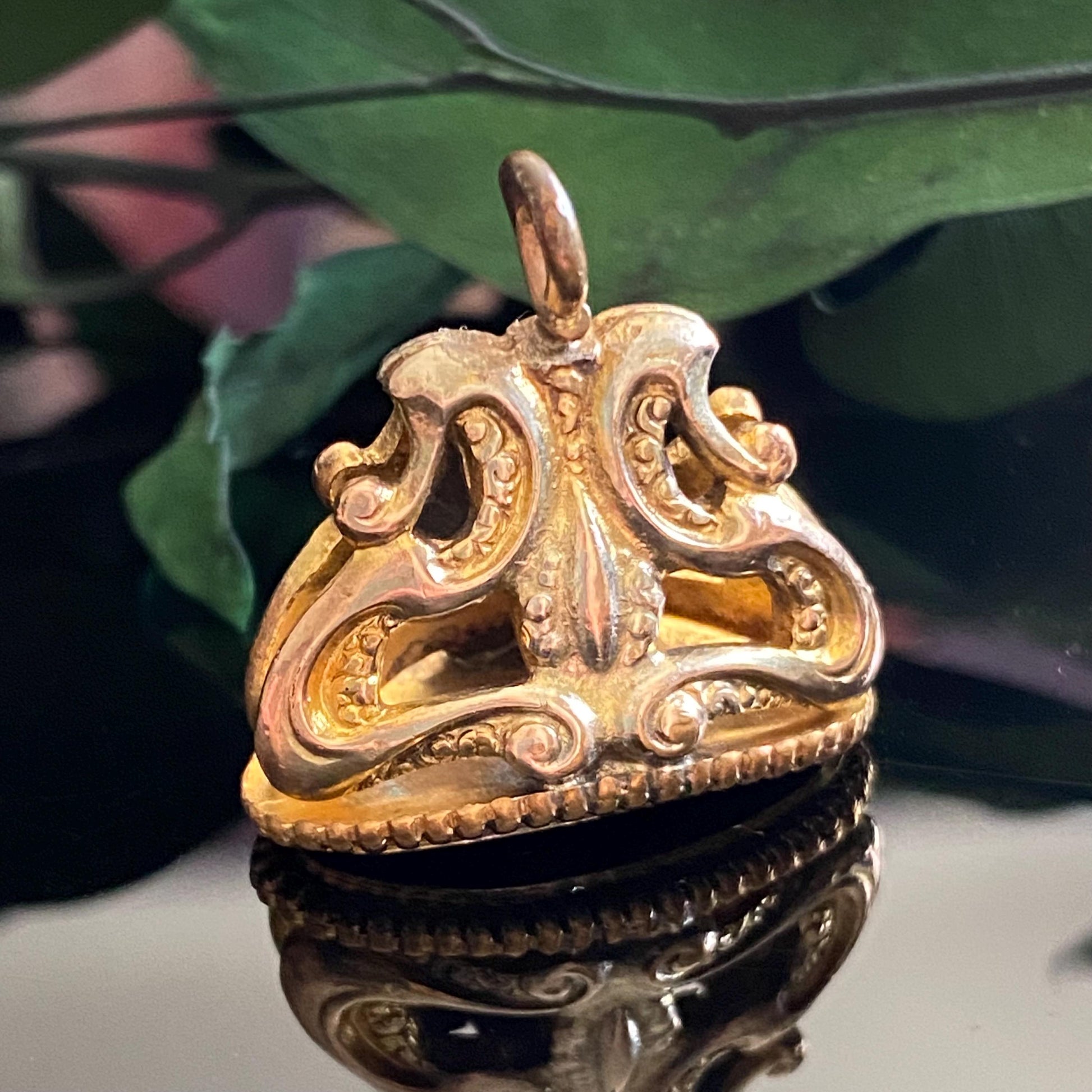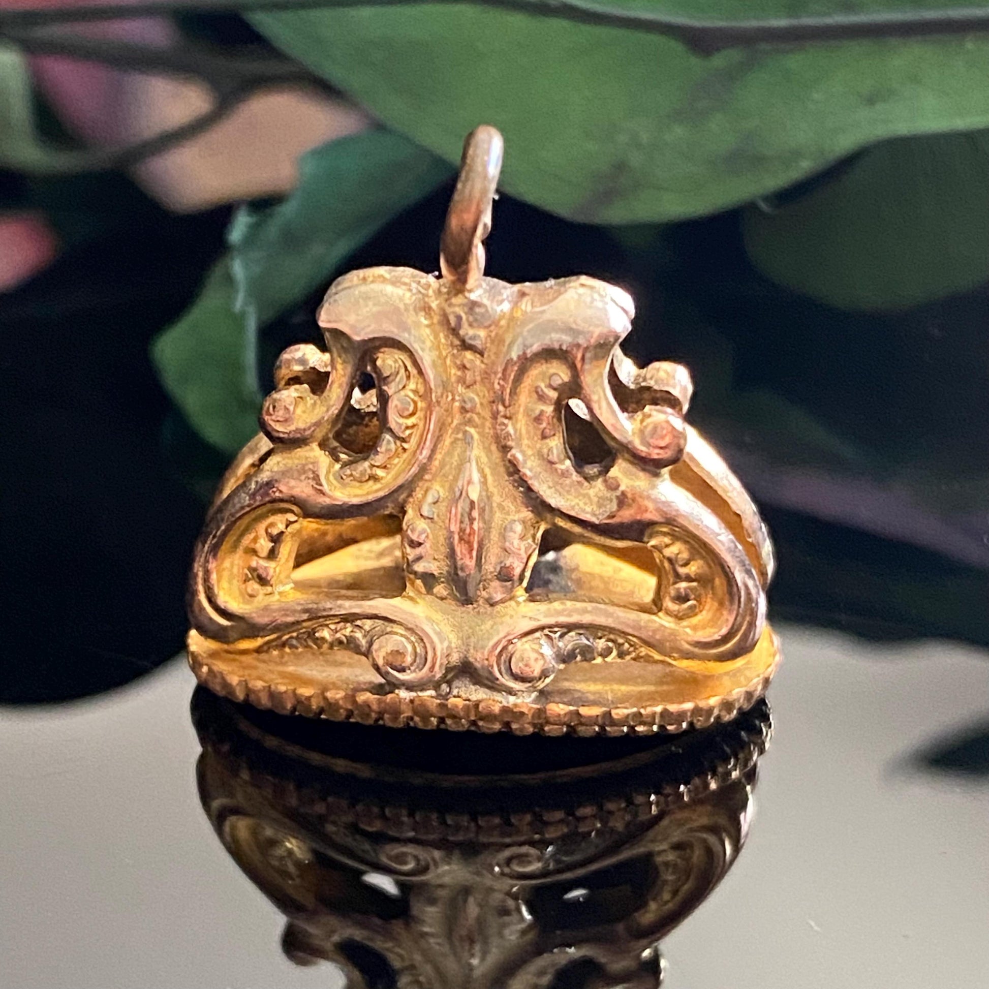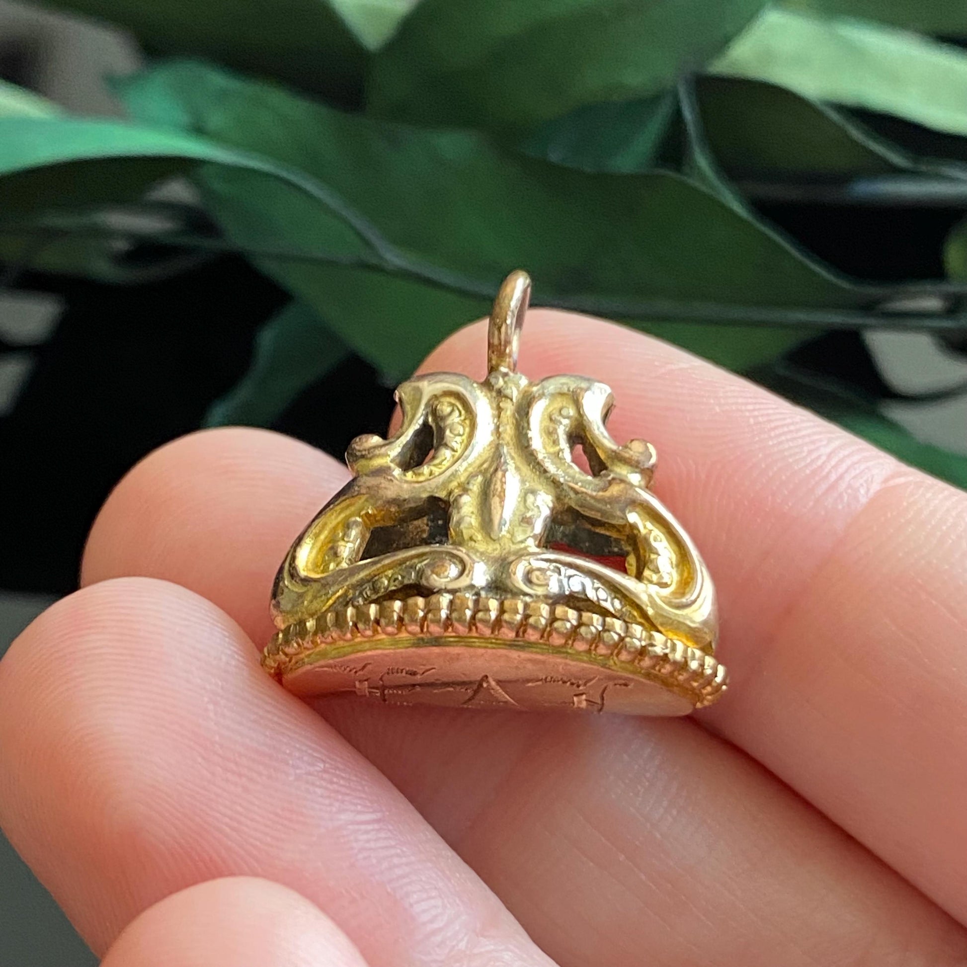 Antique Victorian to Edwardian era gold filled wax seal fob charm with the initials E.A.L. monogrammed on the charms curved base.
