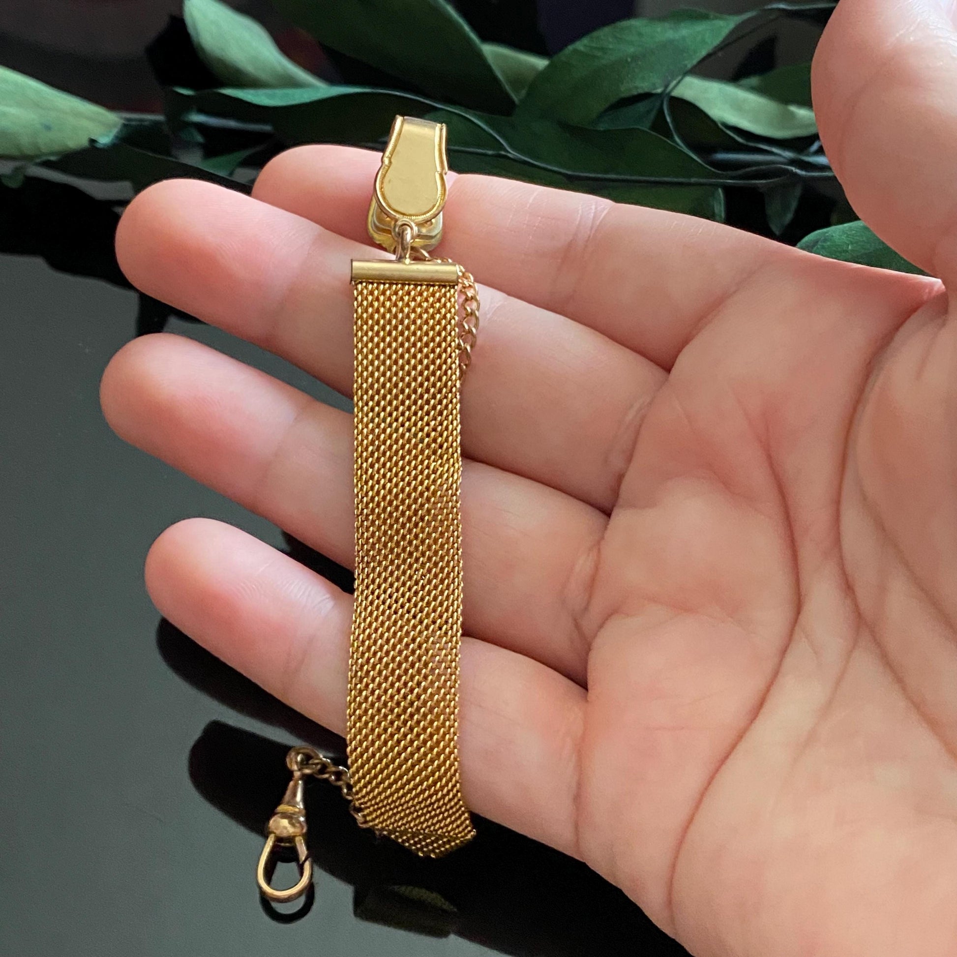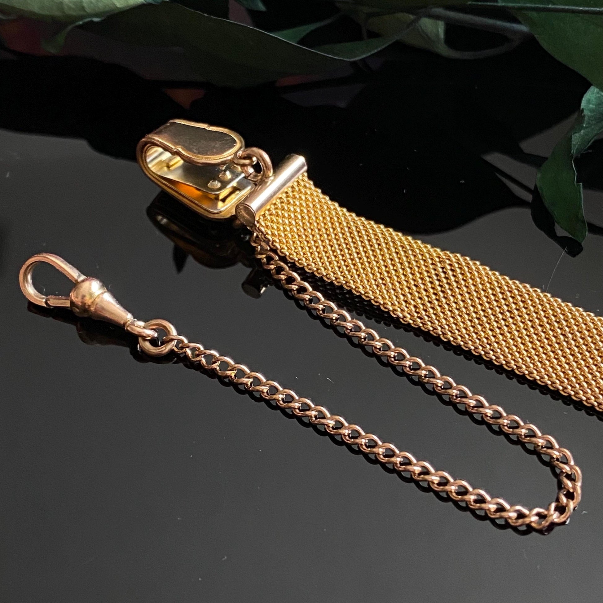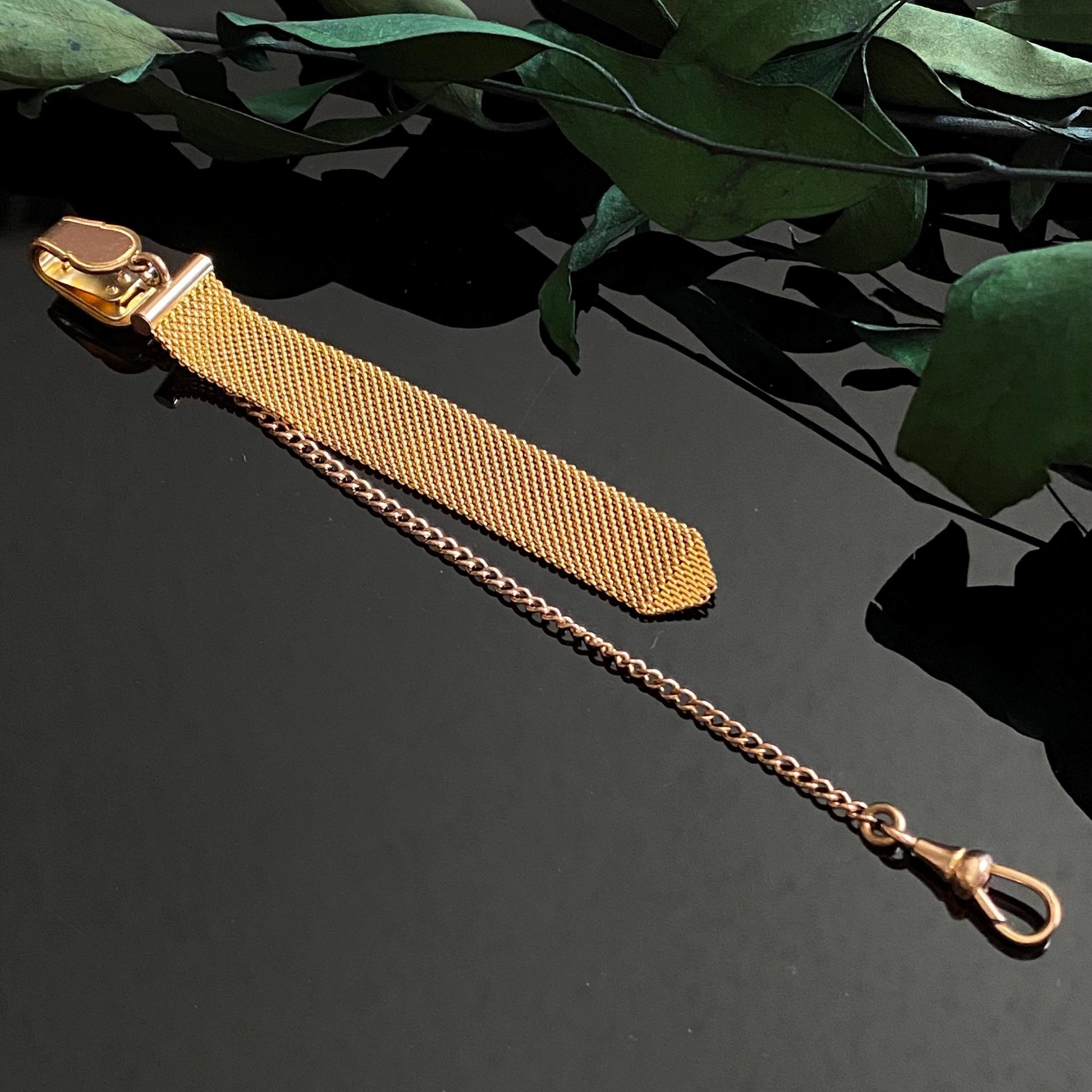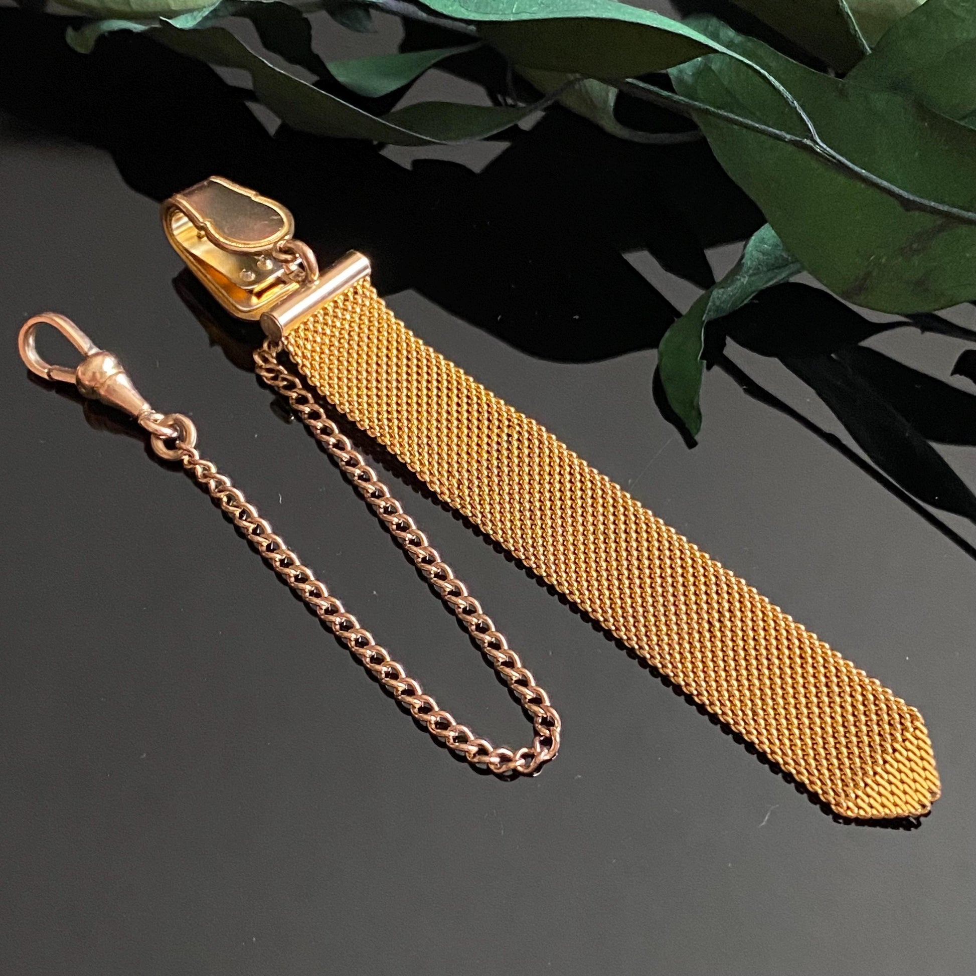 Antique Gold Filled Slim Mesh Vest Clip Watch Fob Chain