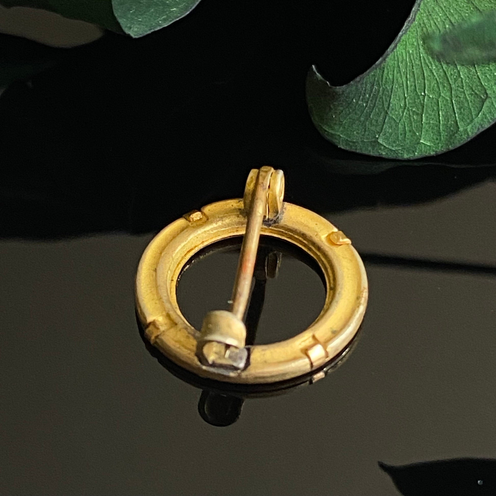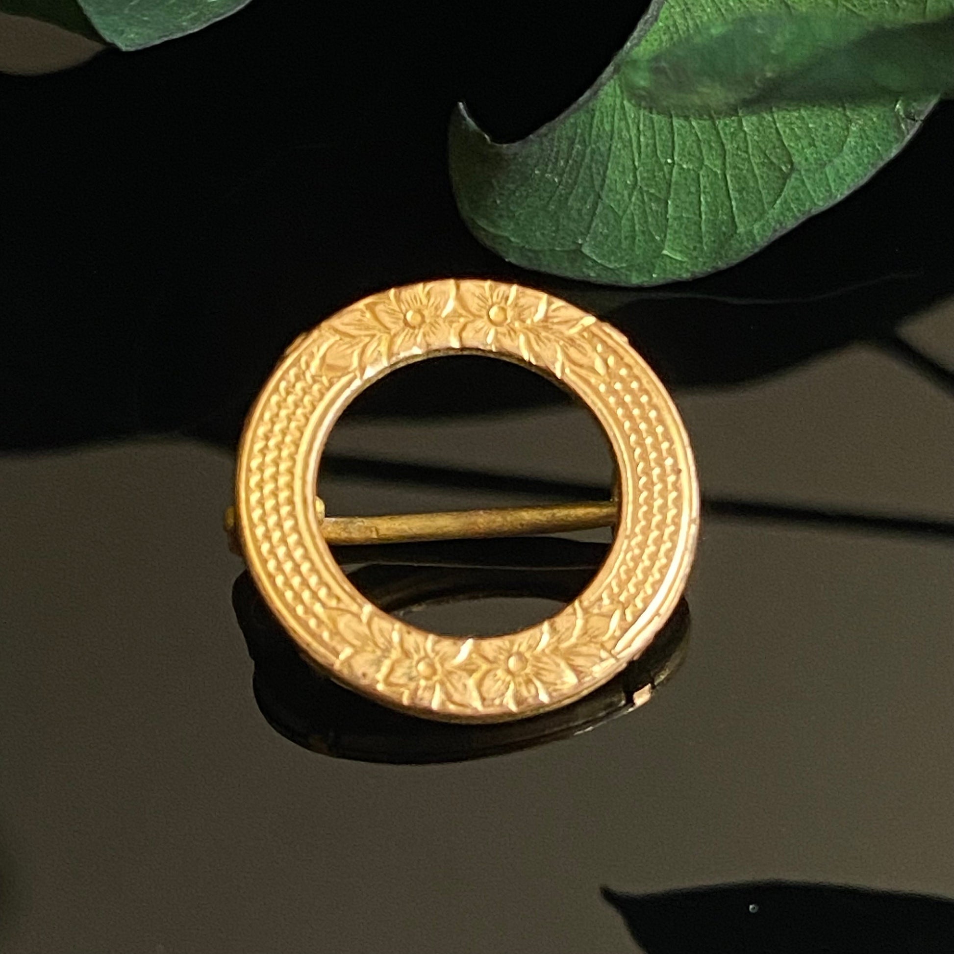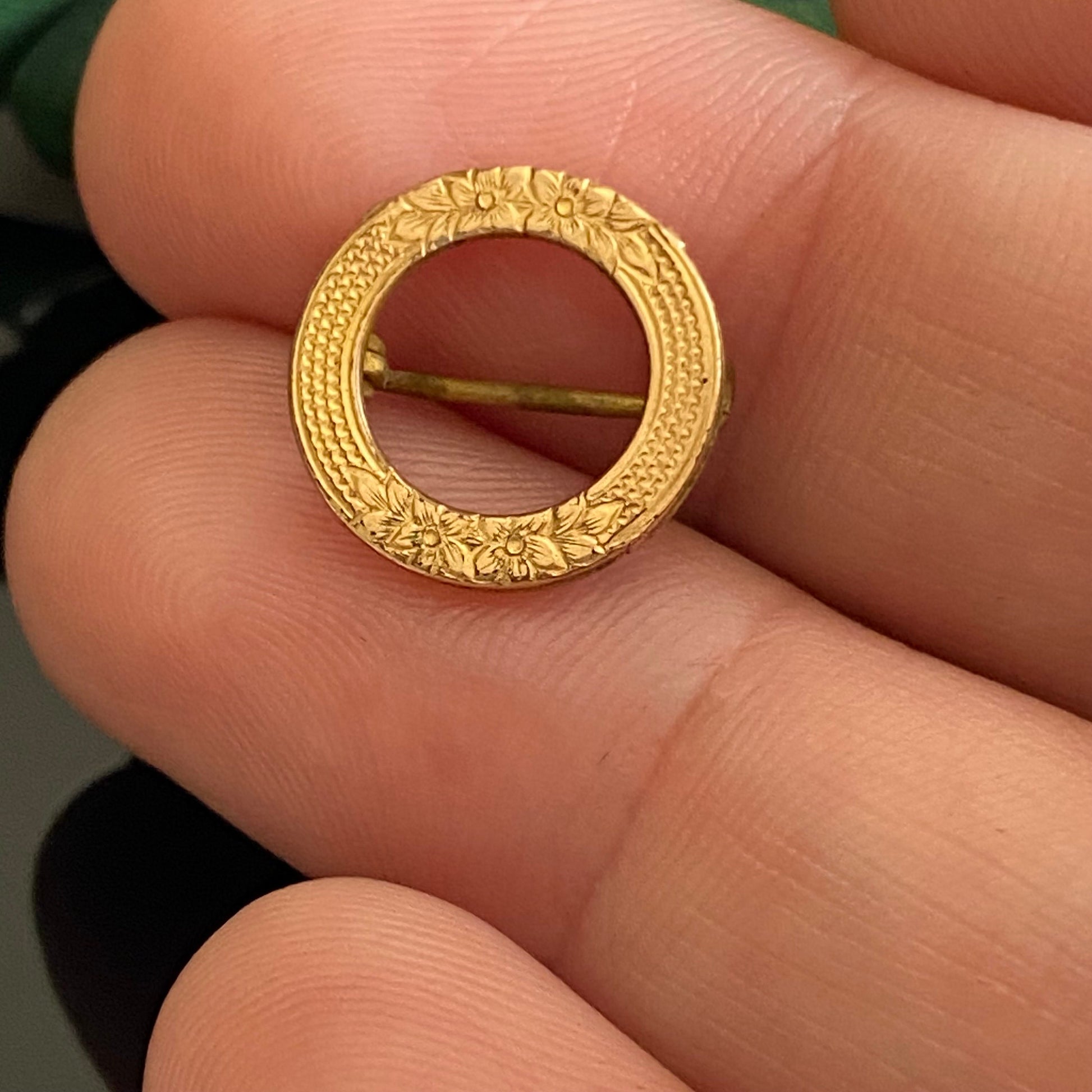 Tiny antique Victorian to Edwardian era gold filled top and gilt brass floral circle pin.