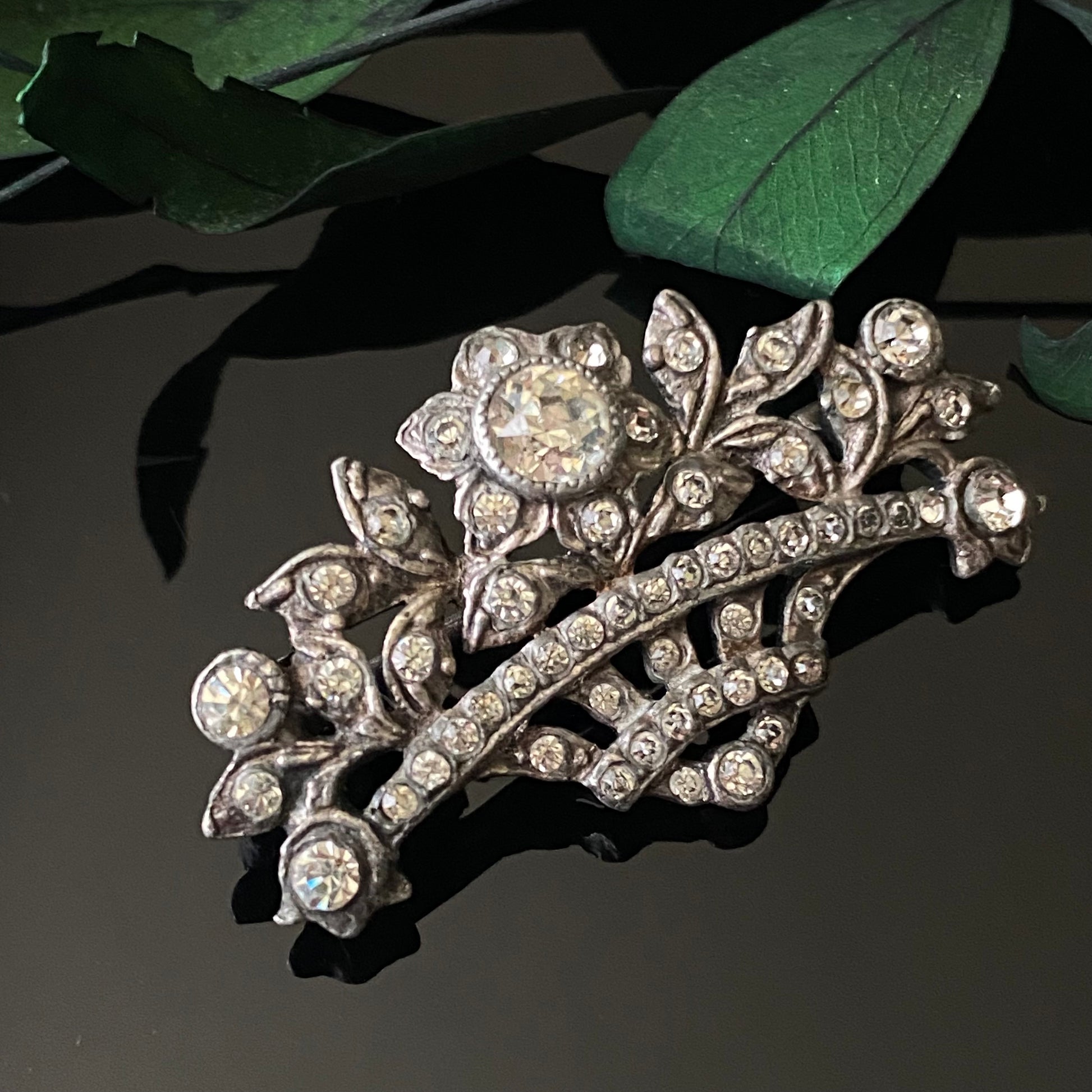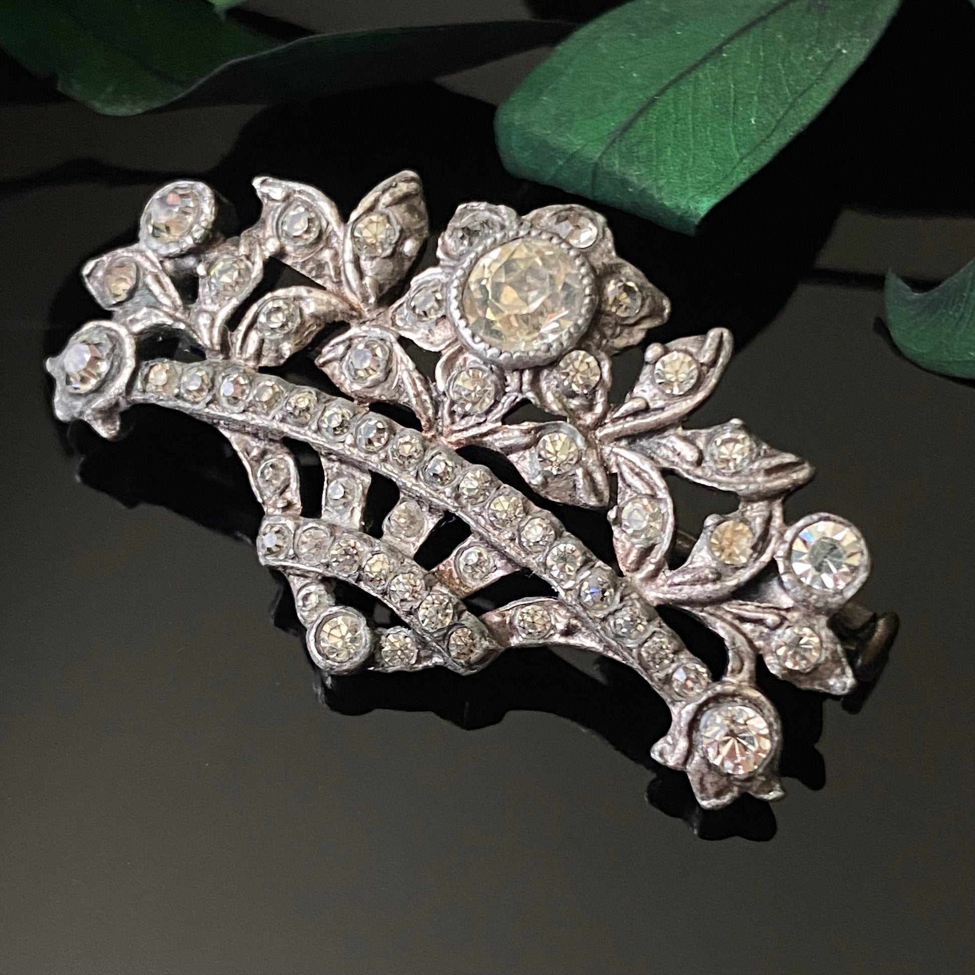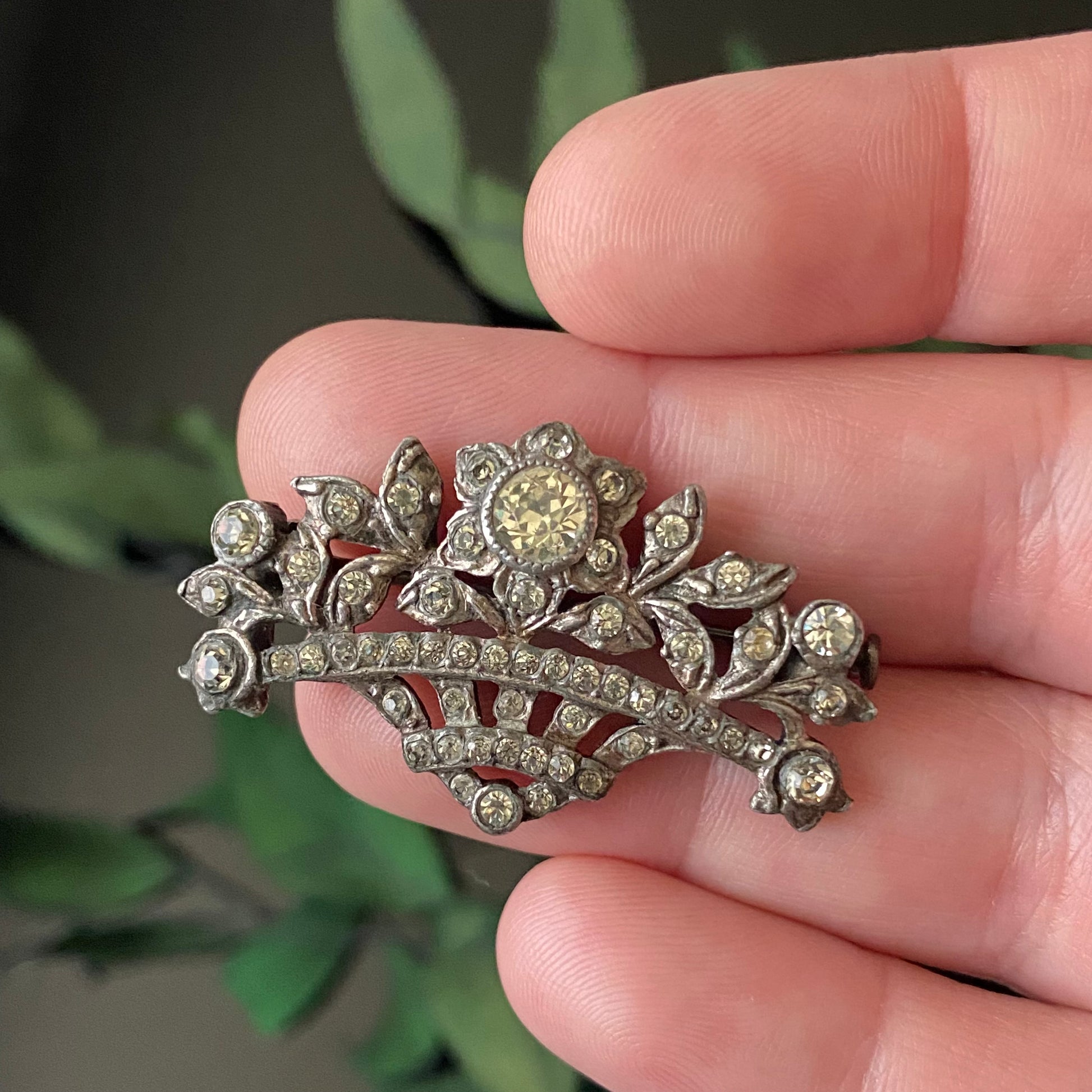 Antique Edwardian sterling silver and foiled paste “giardinetti” flower bouquet brooch with trombone clasp.
