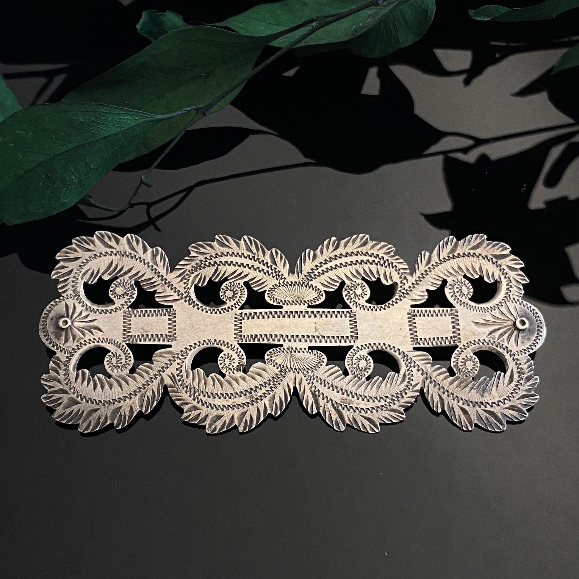 Antique Victorian Engraved Sterling Silver Slide Buckle