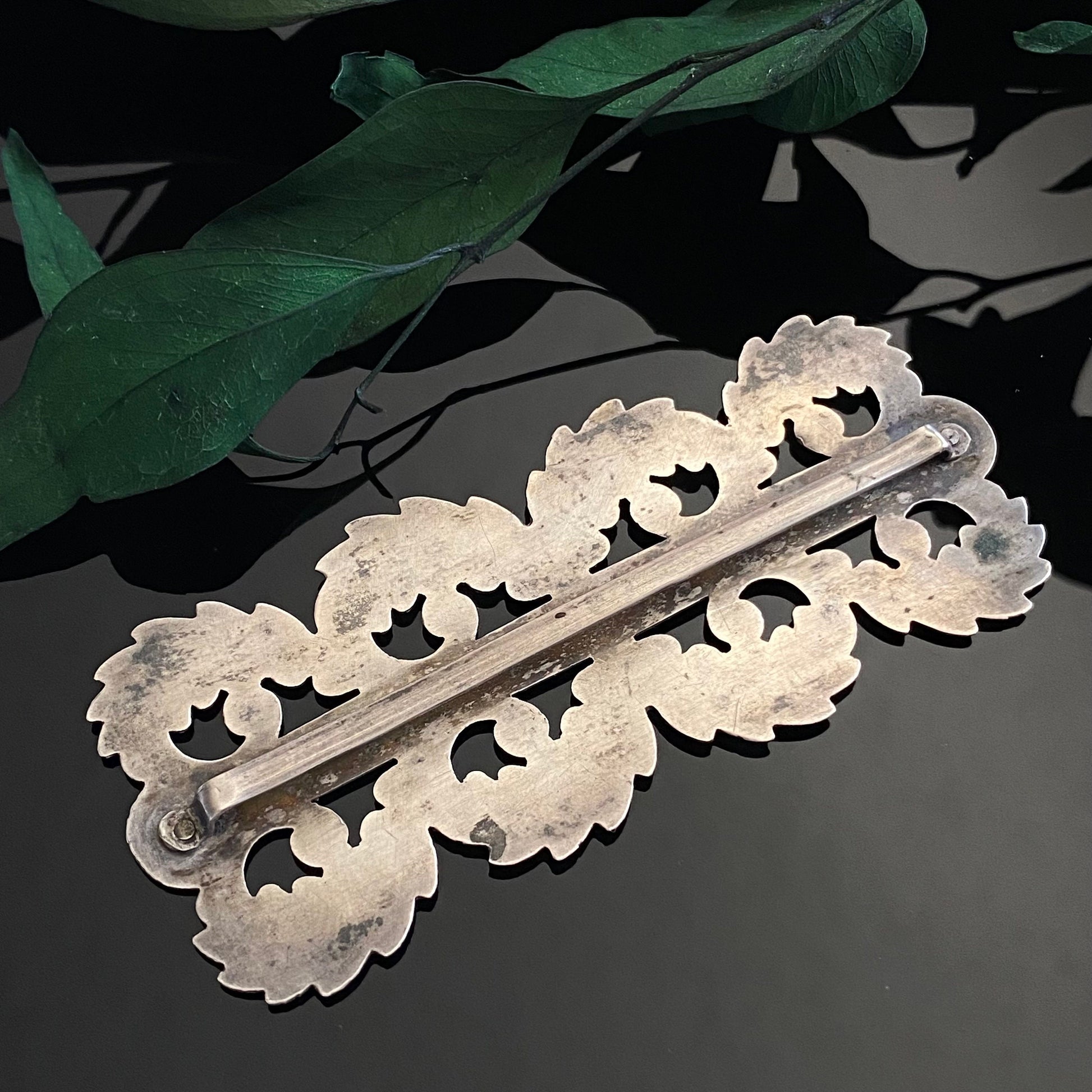 Antique engraved sterling silver Victorian sash or belt slide buckle.