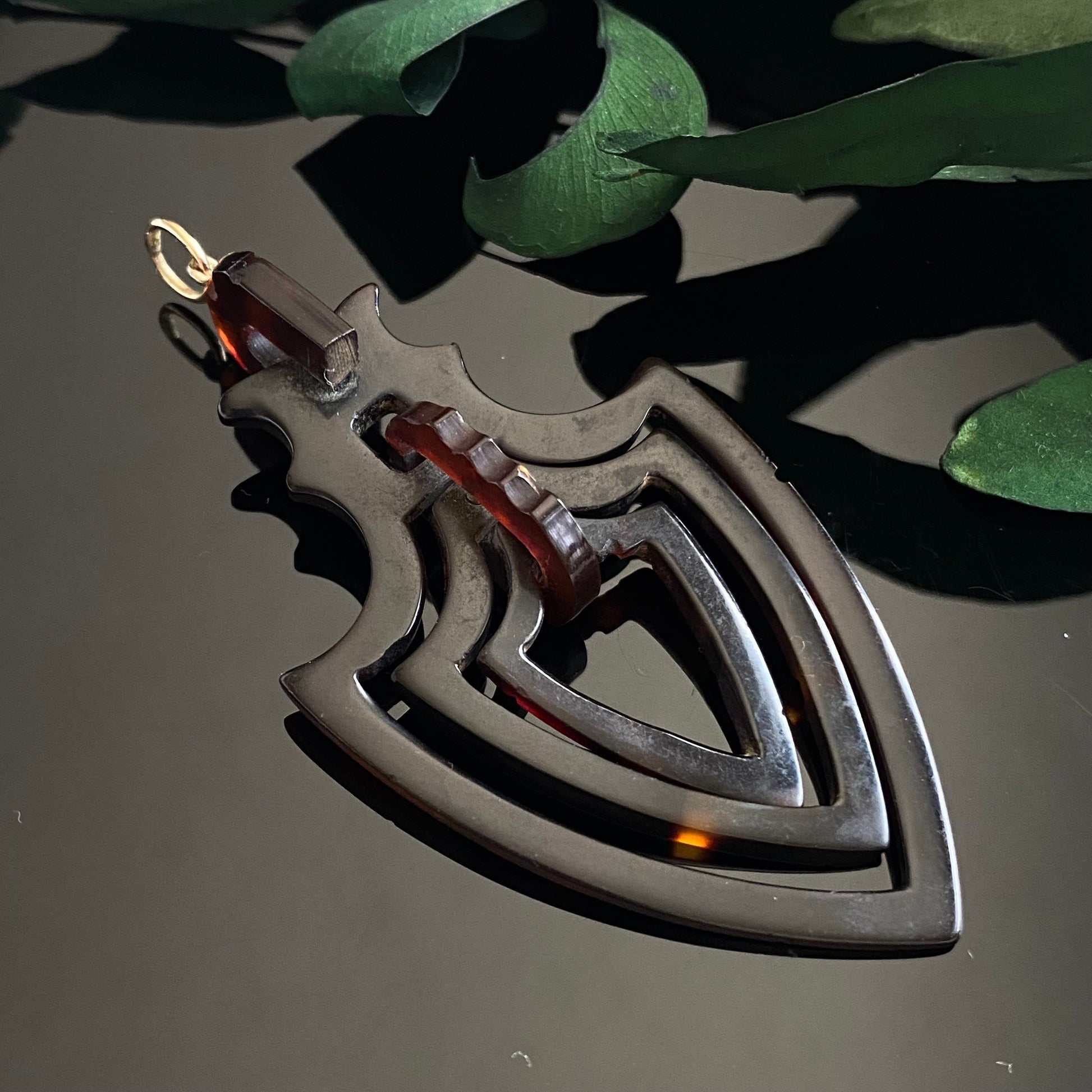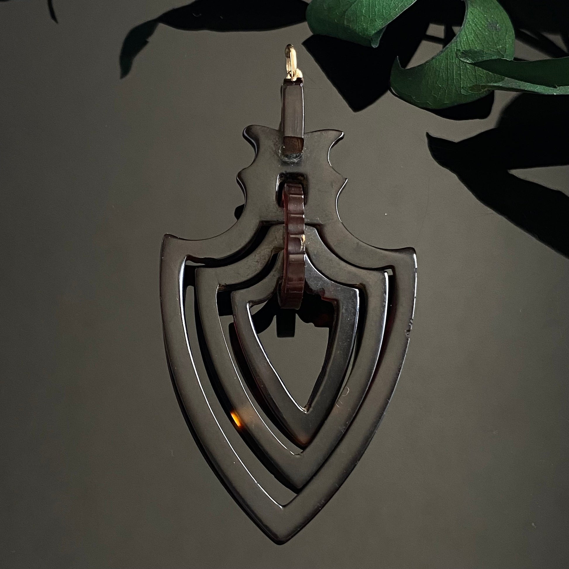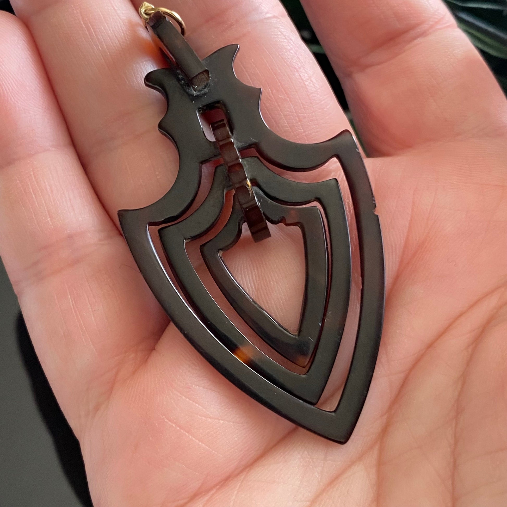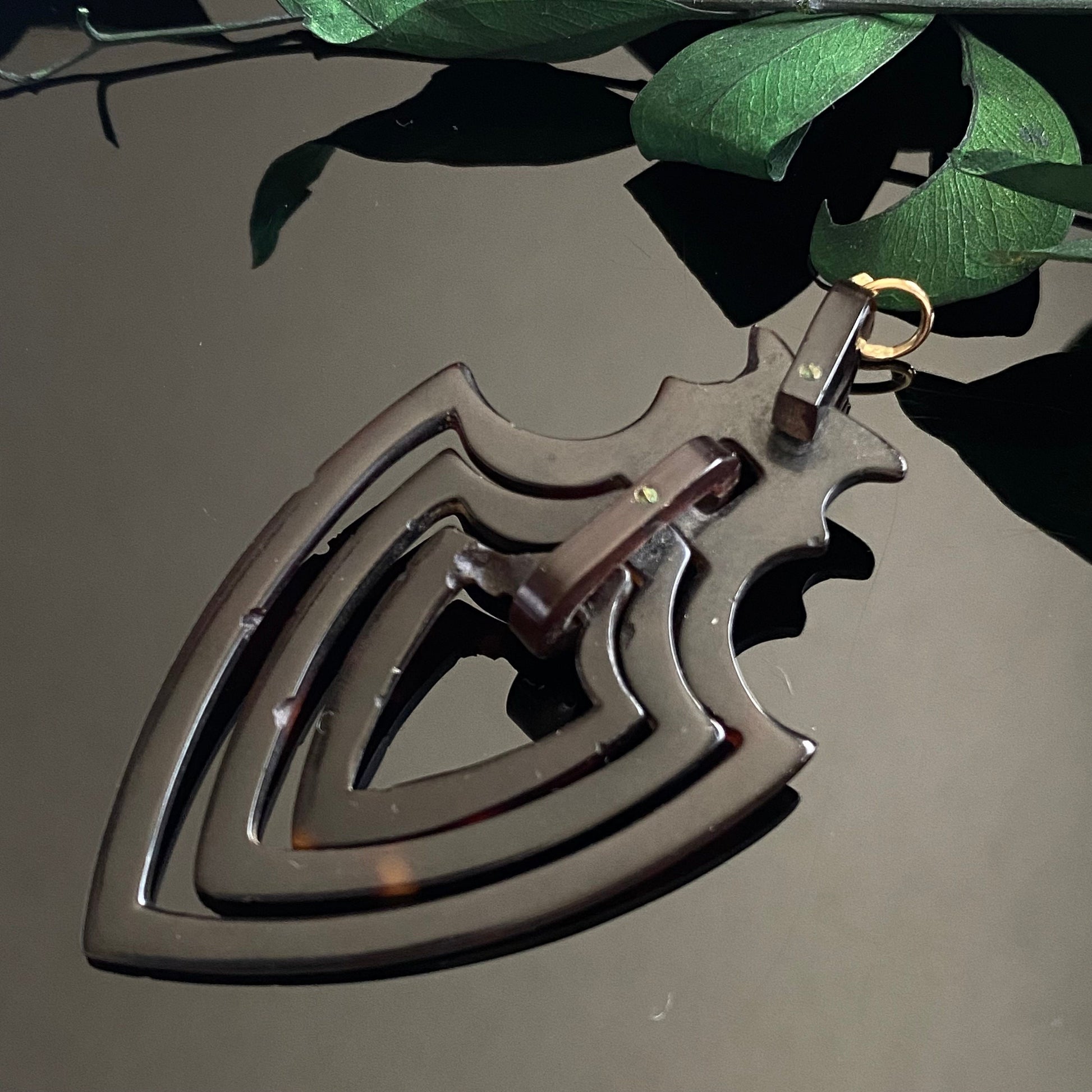 Antique Victorian Faux Tortoise Articulated Shield Pendant
