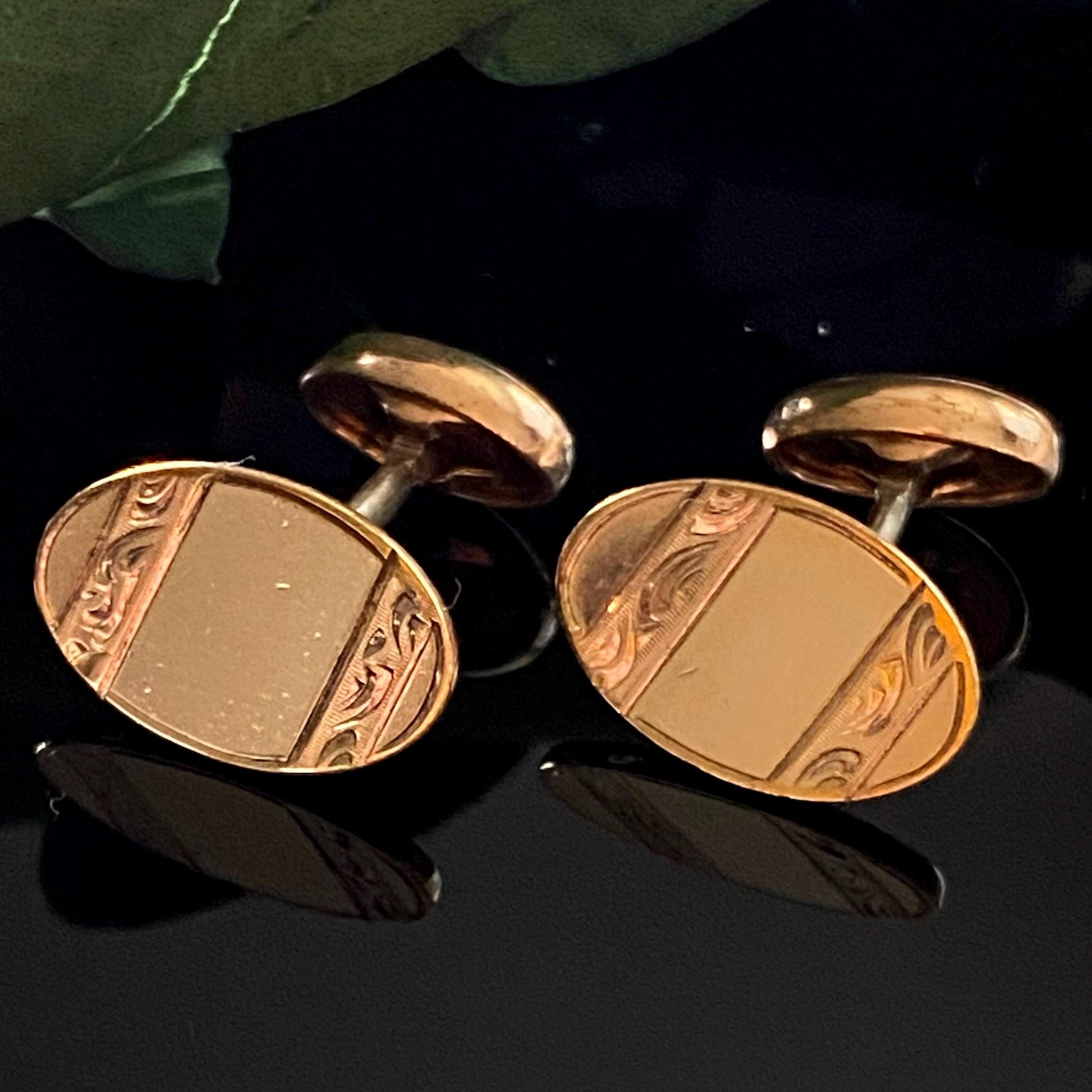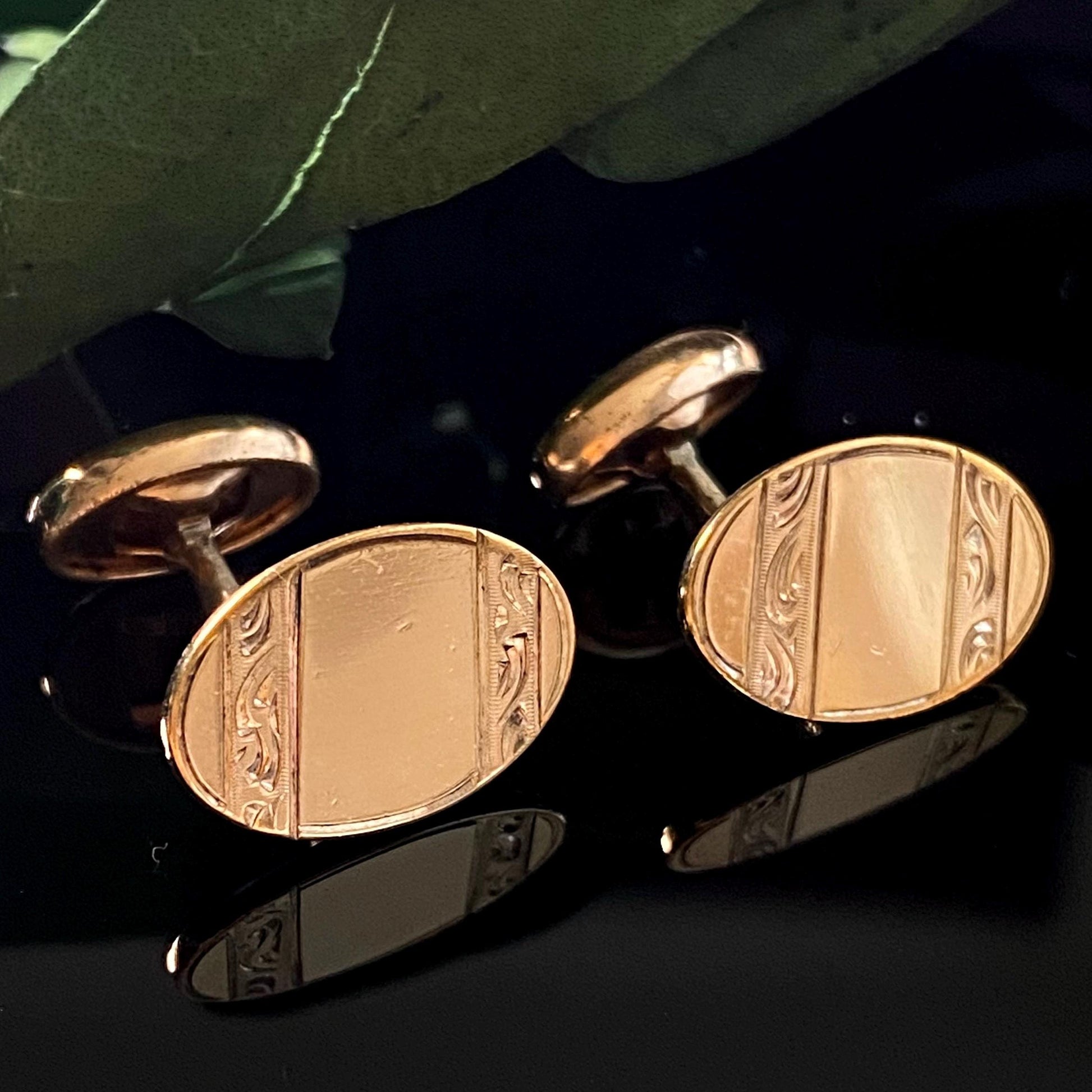 Antique Victorian era rosy gold filled cufflinks with blank space to monogram.