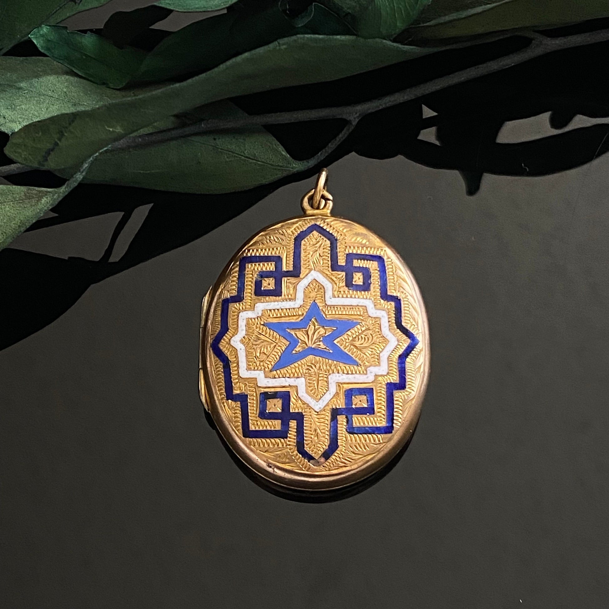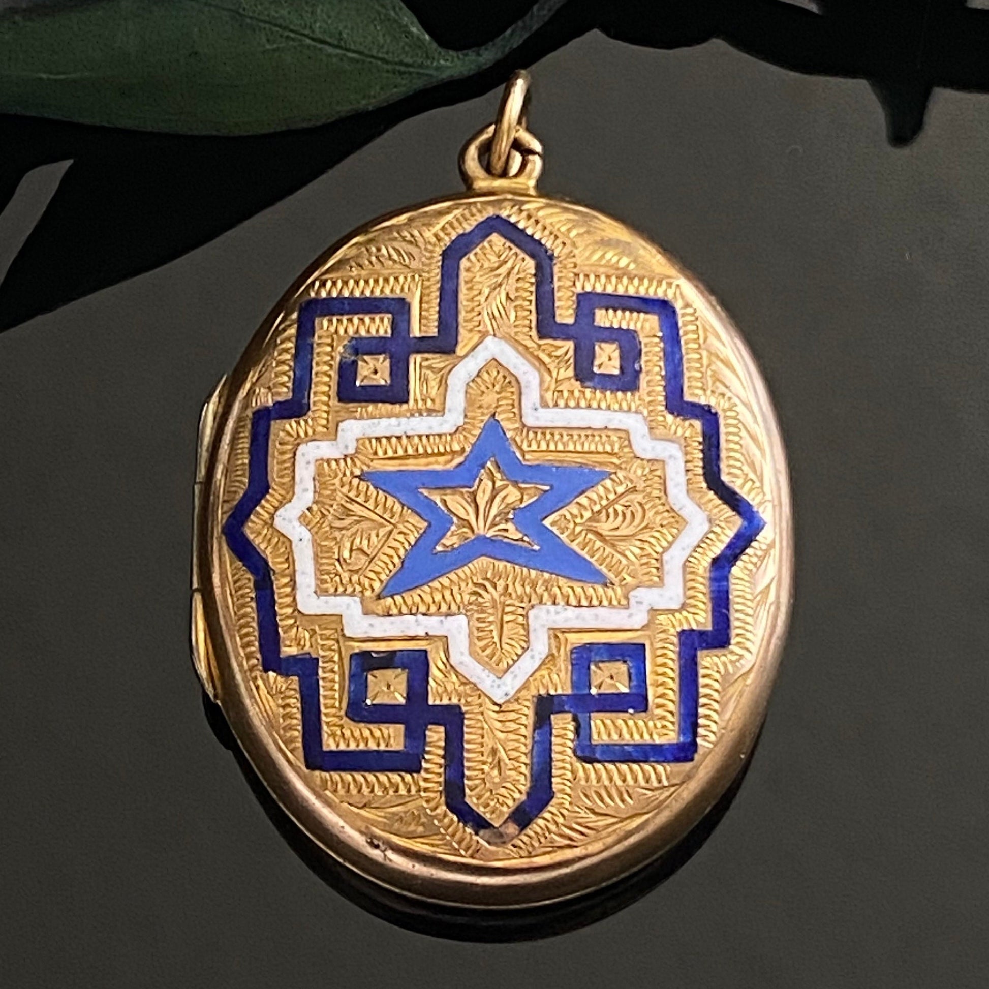 Antique Victorian Pinchbeck Blue White Enamel Oval Locket