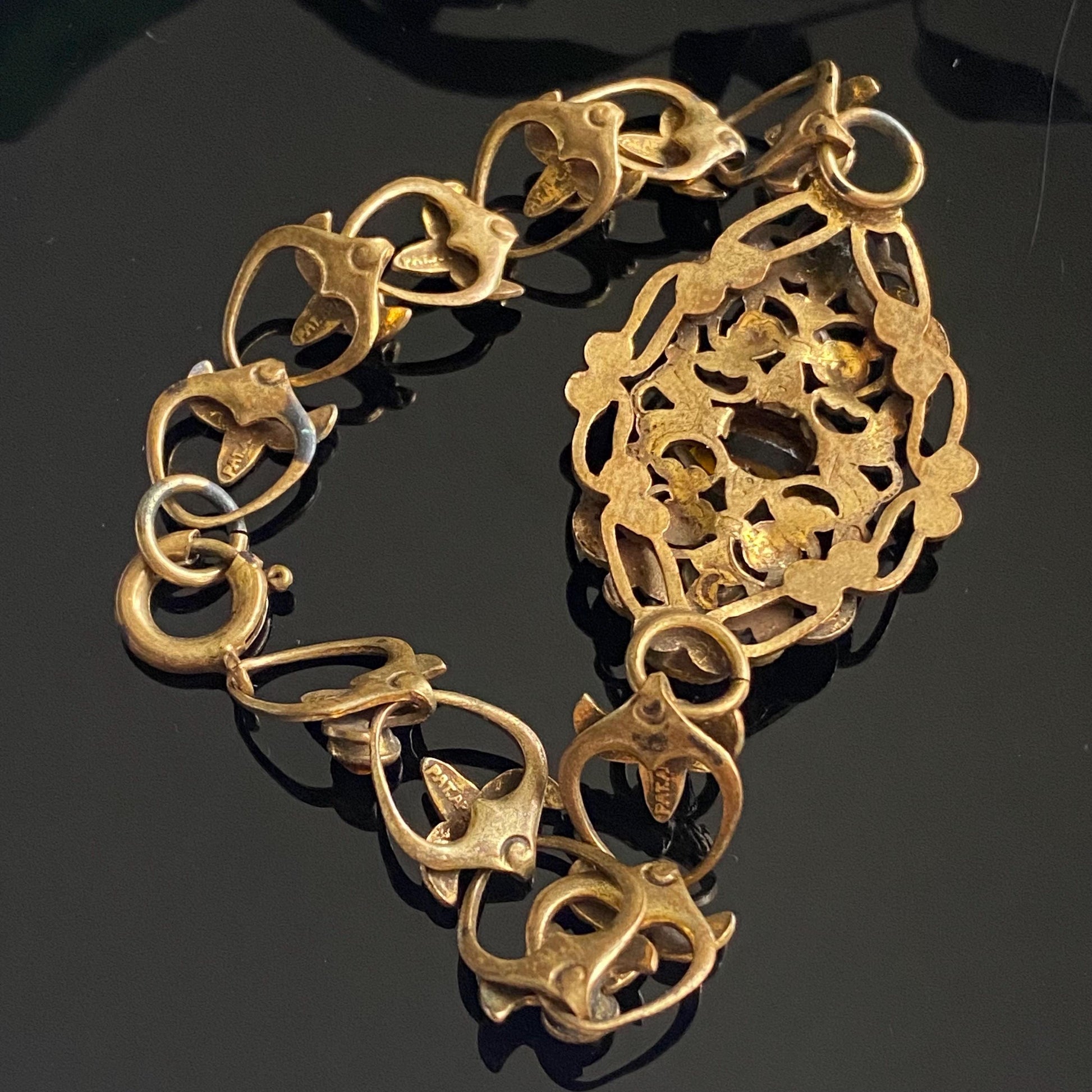 Antique Vintage Art Deco Orange Czech Glass Filigree Bracelet