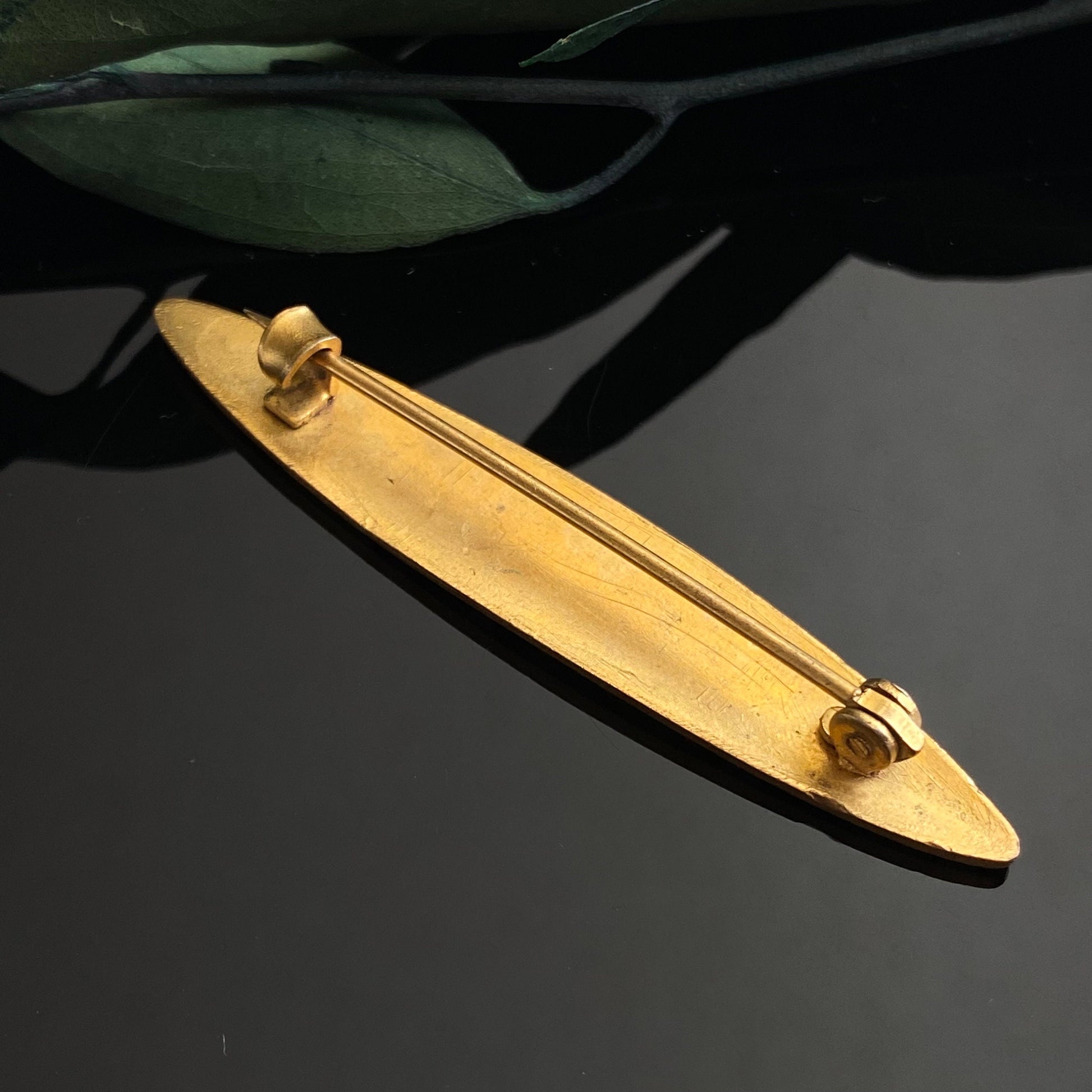 Antique early 1900s art nouveau gilt brass floral navette pin.
