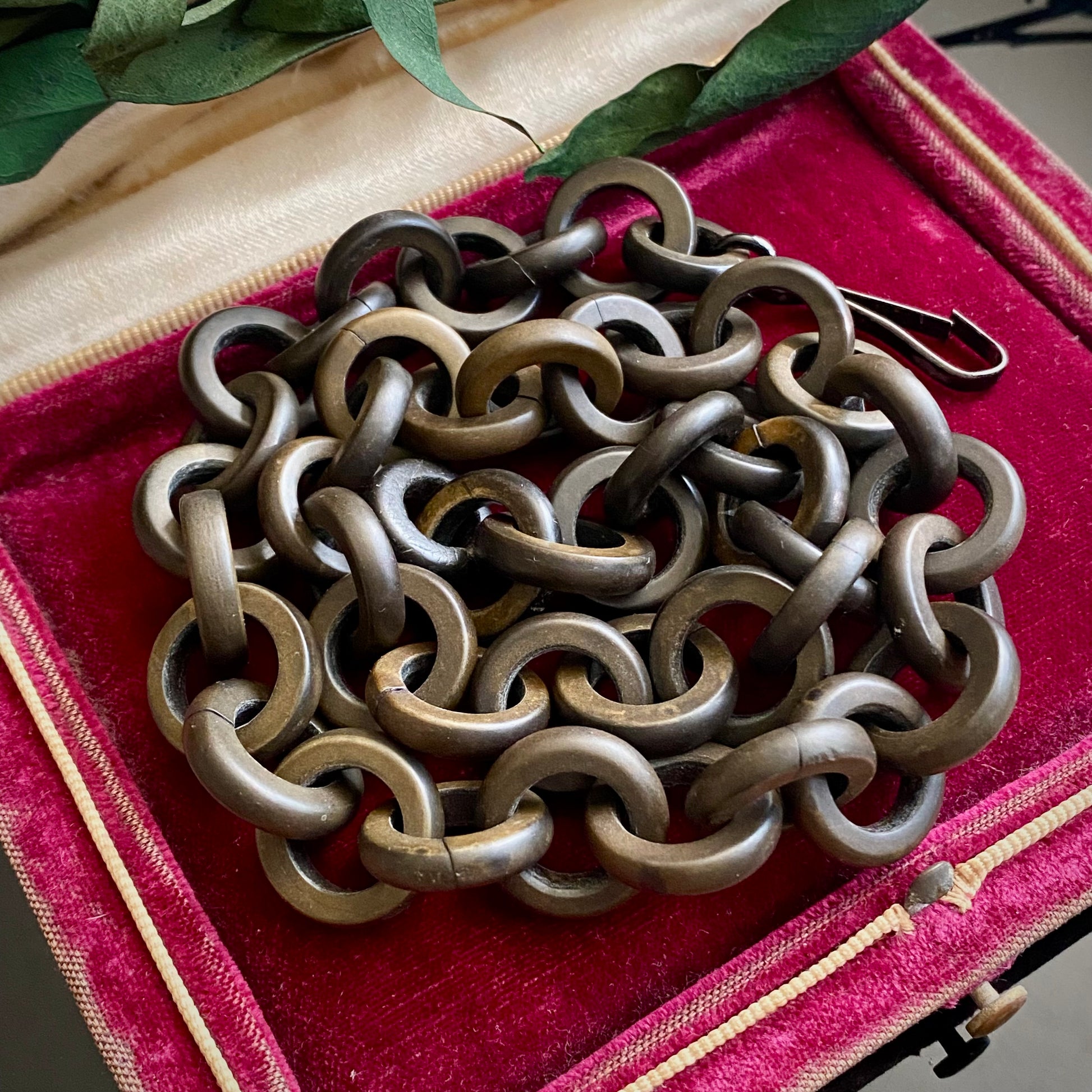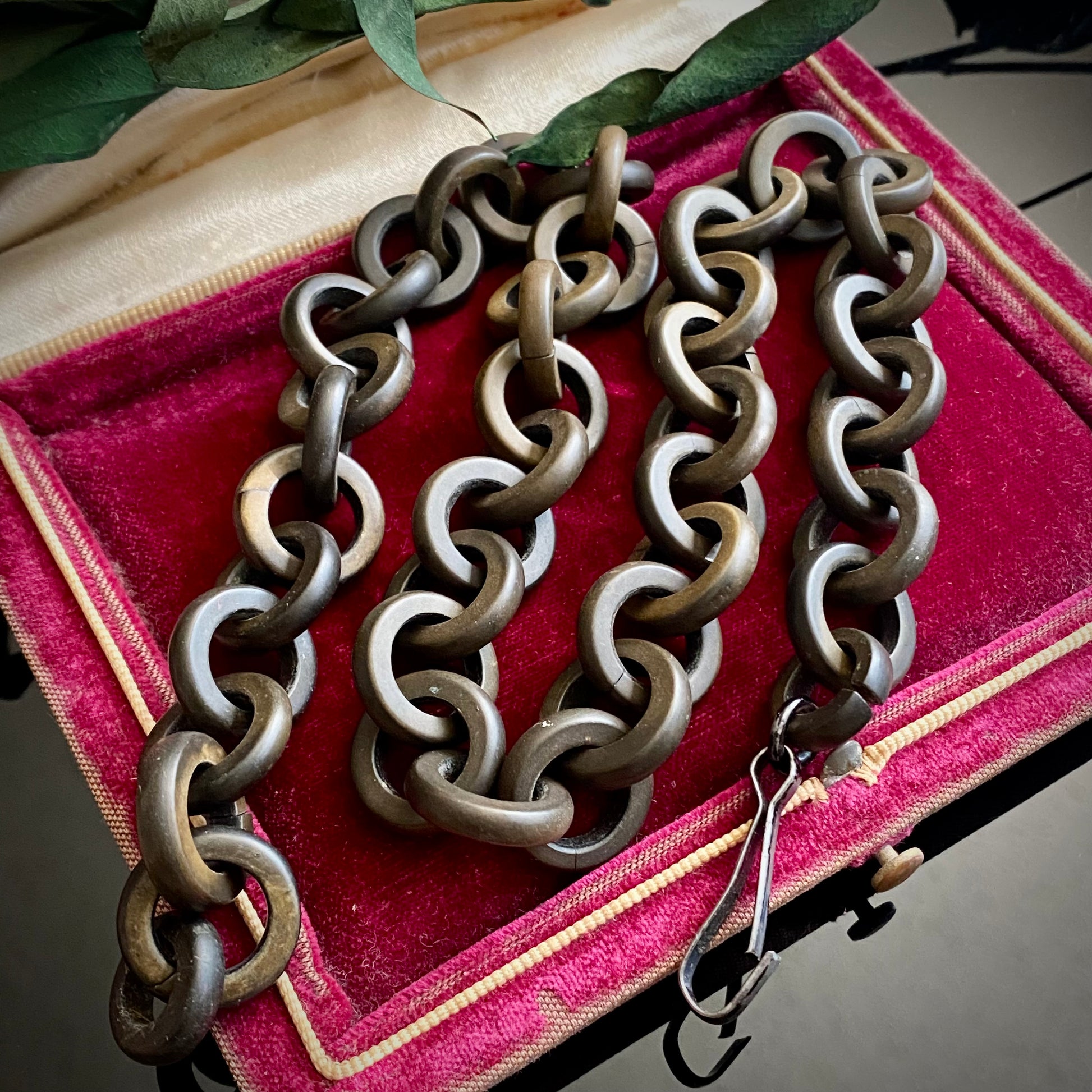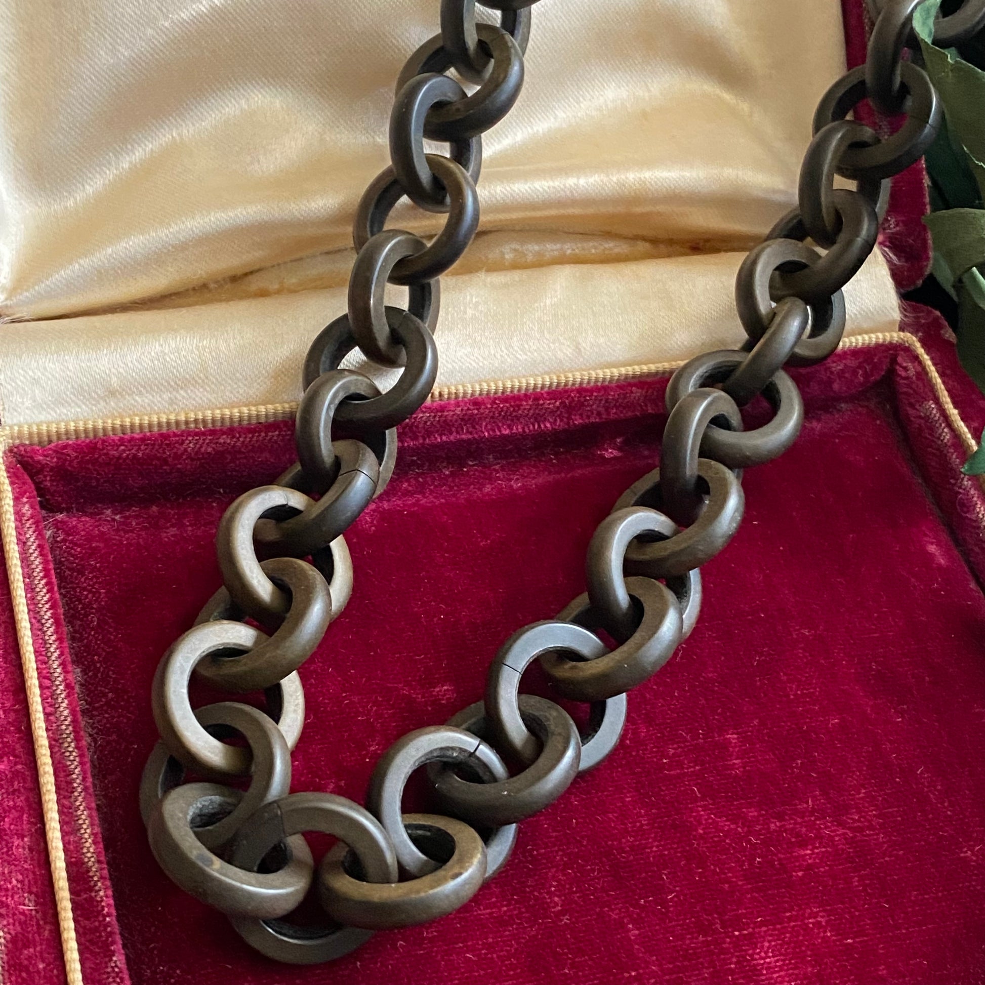 Antique Victorian era chunky Gutta Percha link chain necklace, possibly worn in mourning.