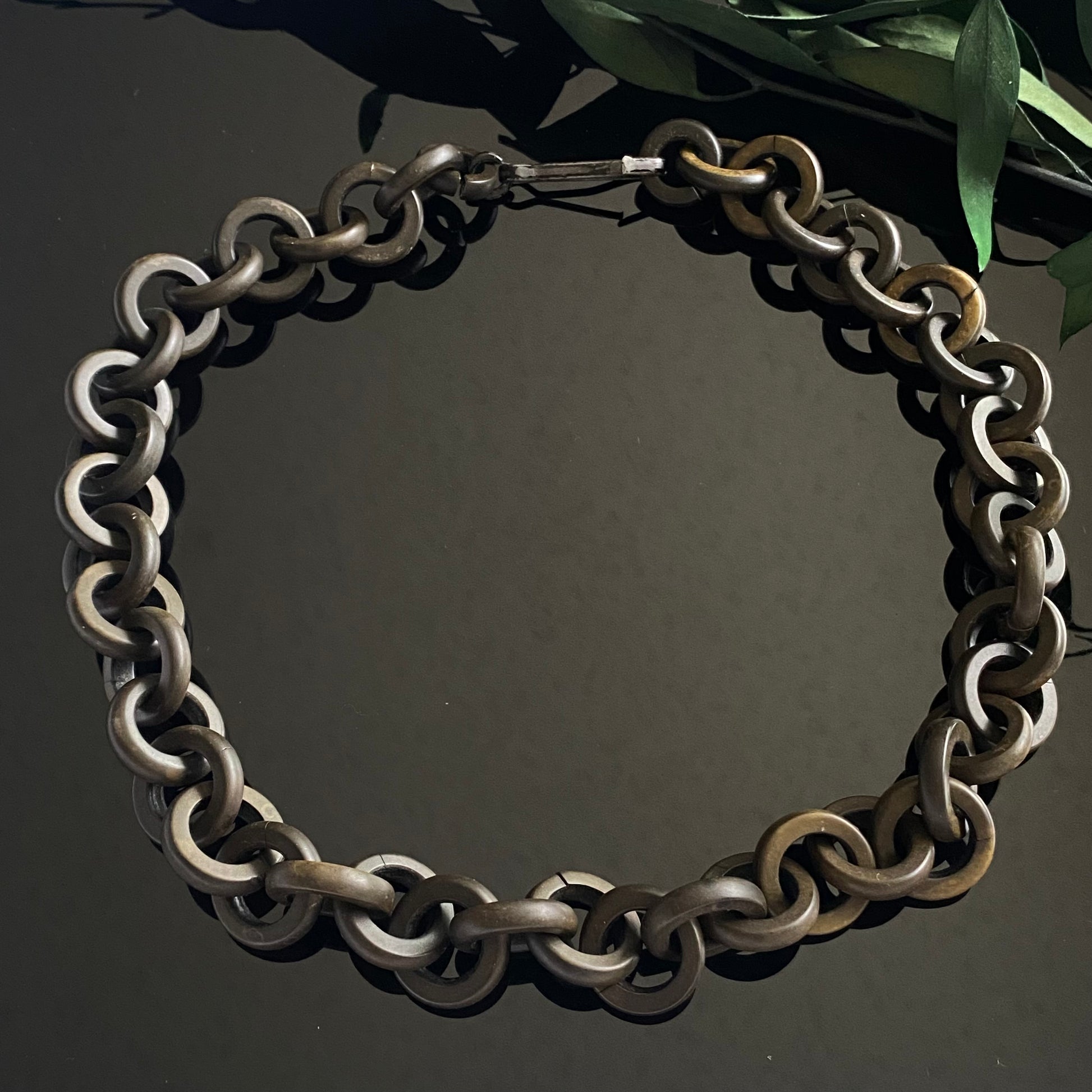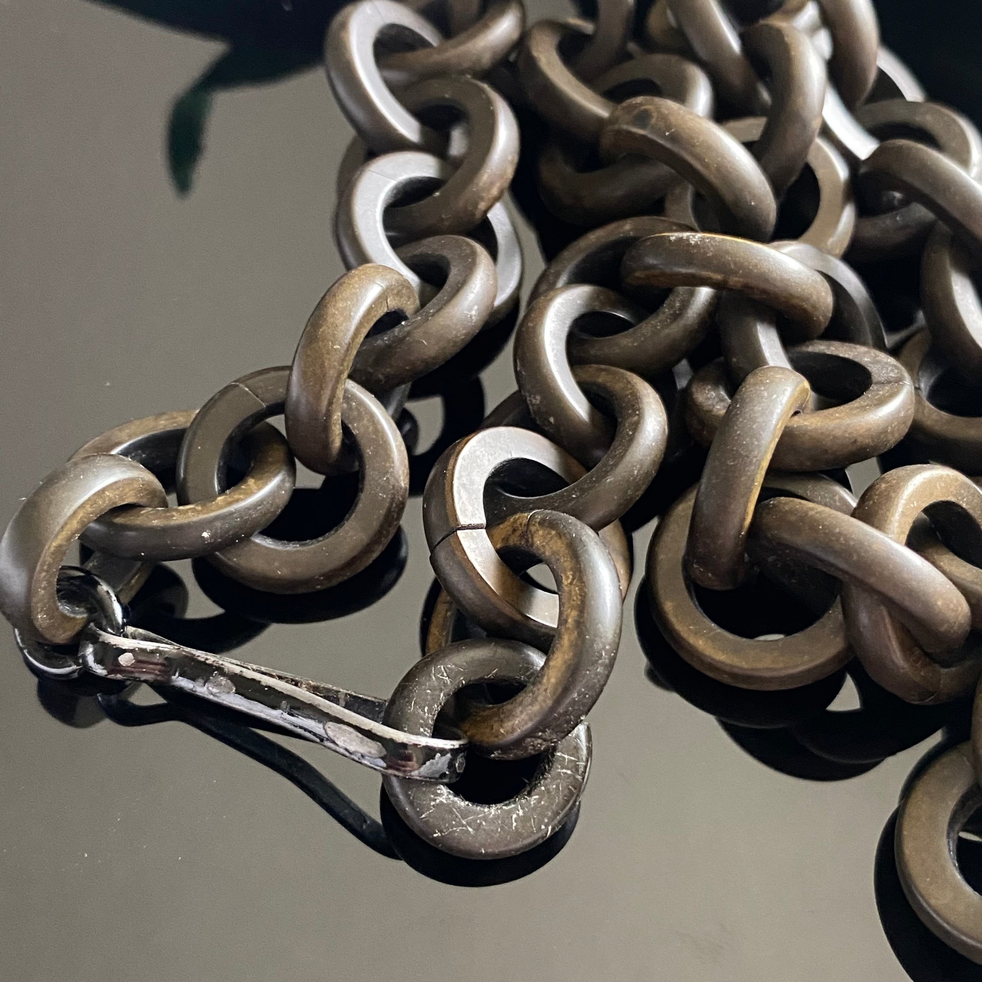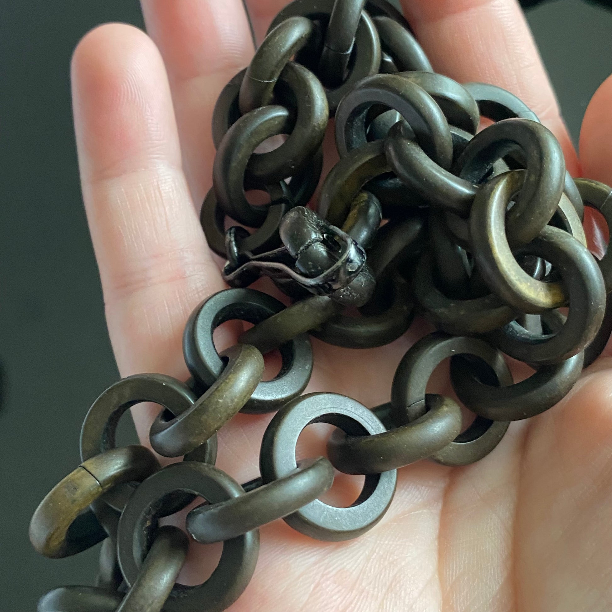Antique Victorian era chunky Gutta Percha link chain necklace, possibly worn in mourning.
