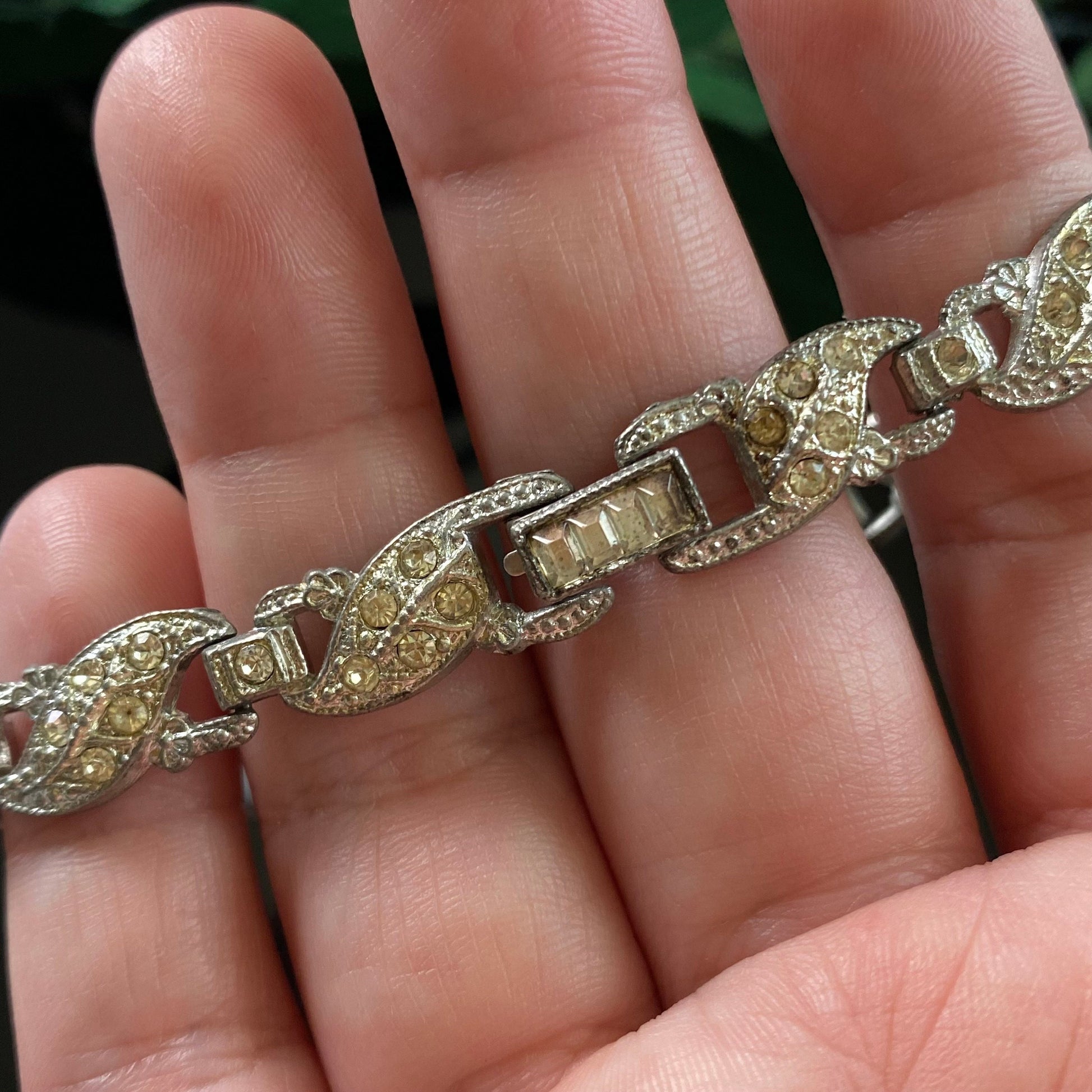 Vintage Art Deco Retro Pot Metal Rhinestone Bracelet 7.5"