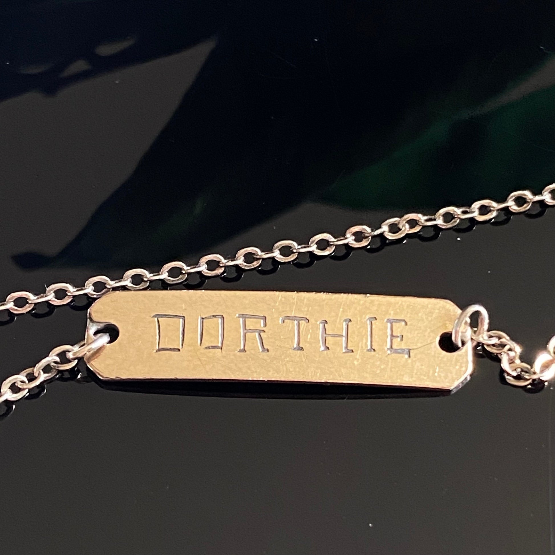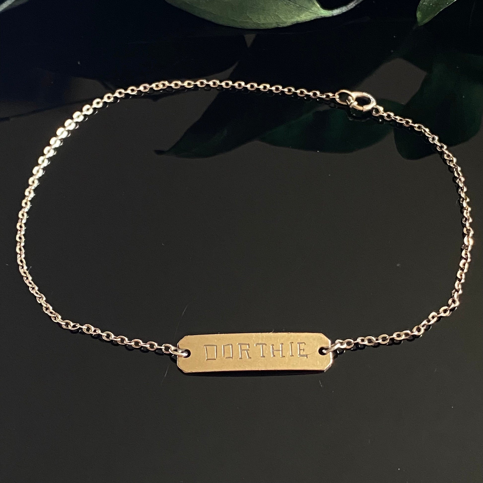Dainty vintage 1/20th 12k gold filled anklet by Forstner with the name "Dorthie" engraved on the ID plate.