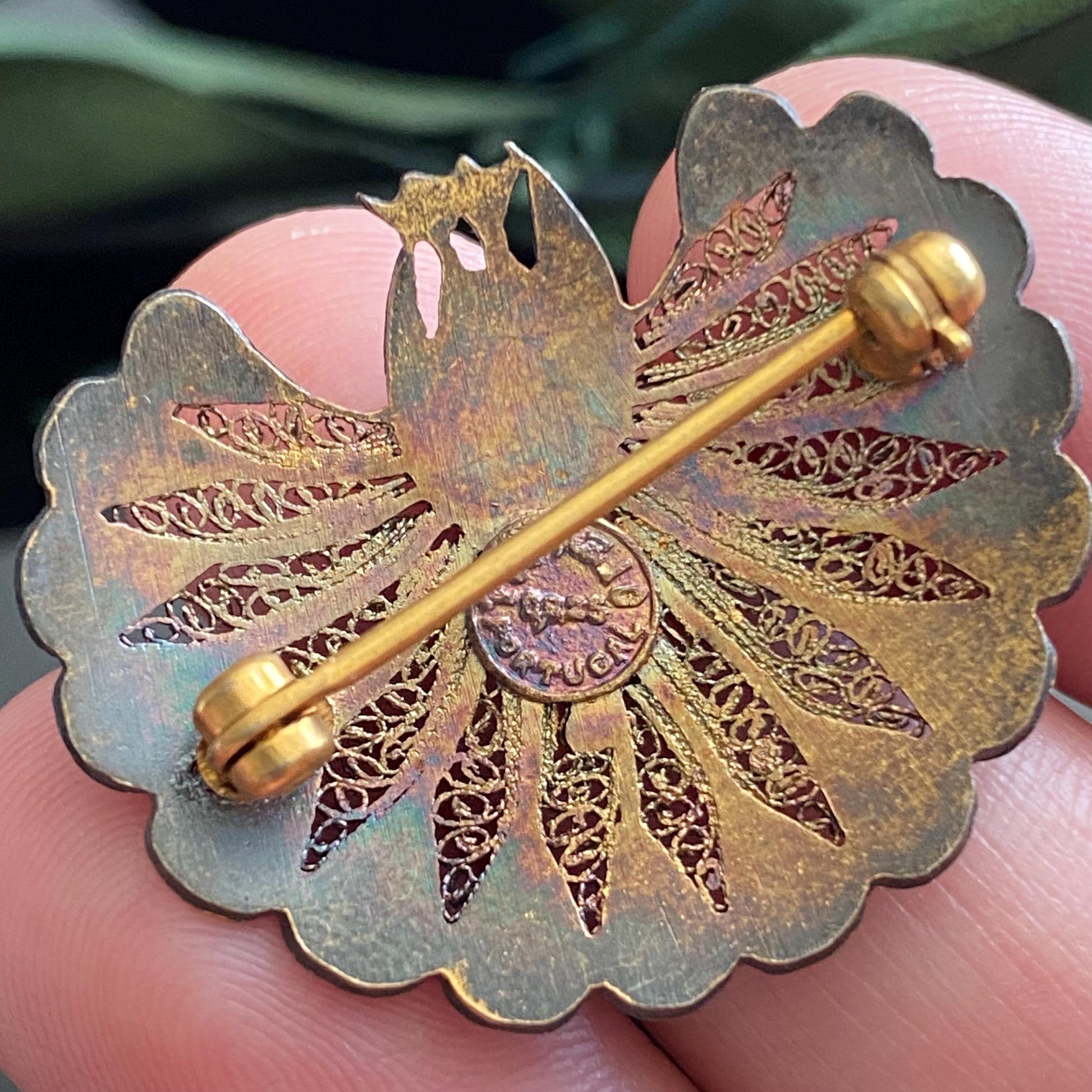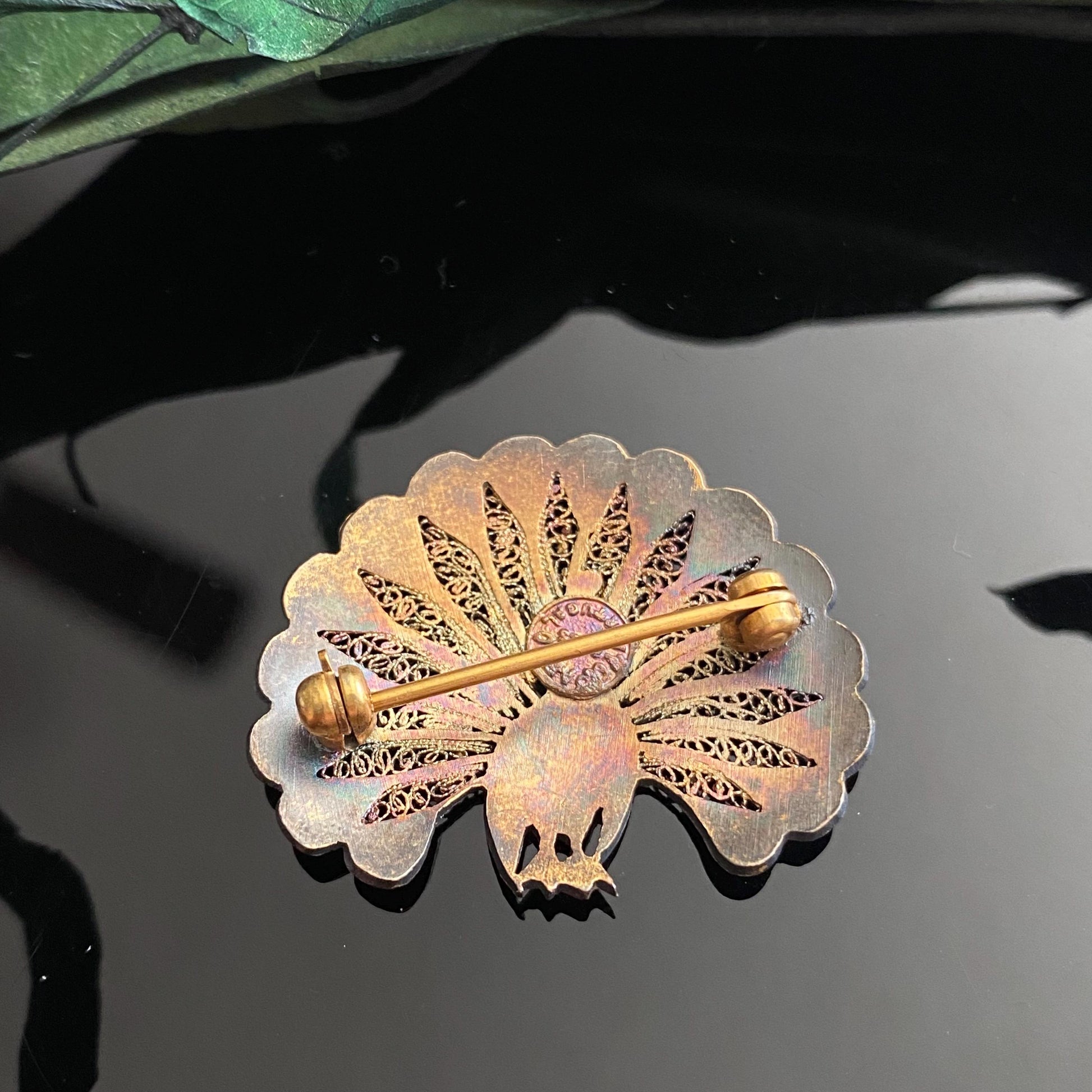 Vintage Gilt Sterling Silver Enamel Peacock Brooch | Topazio | Portugal