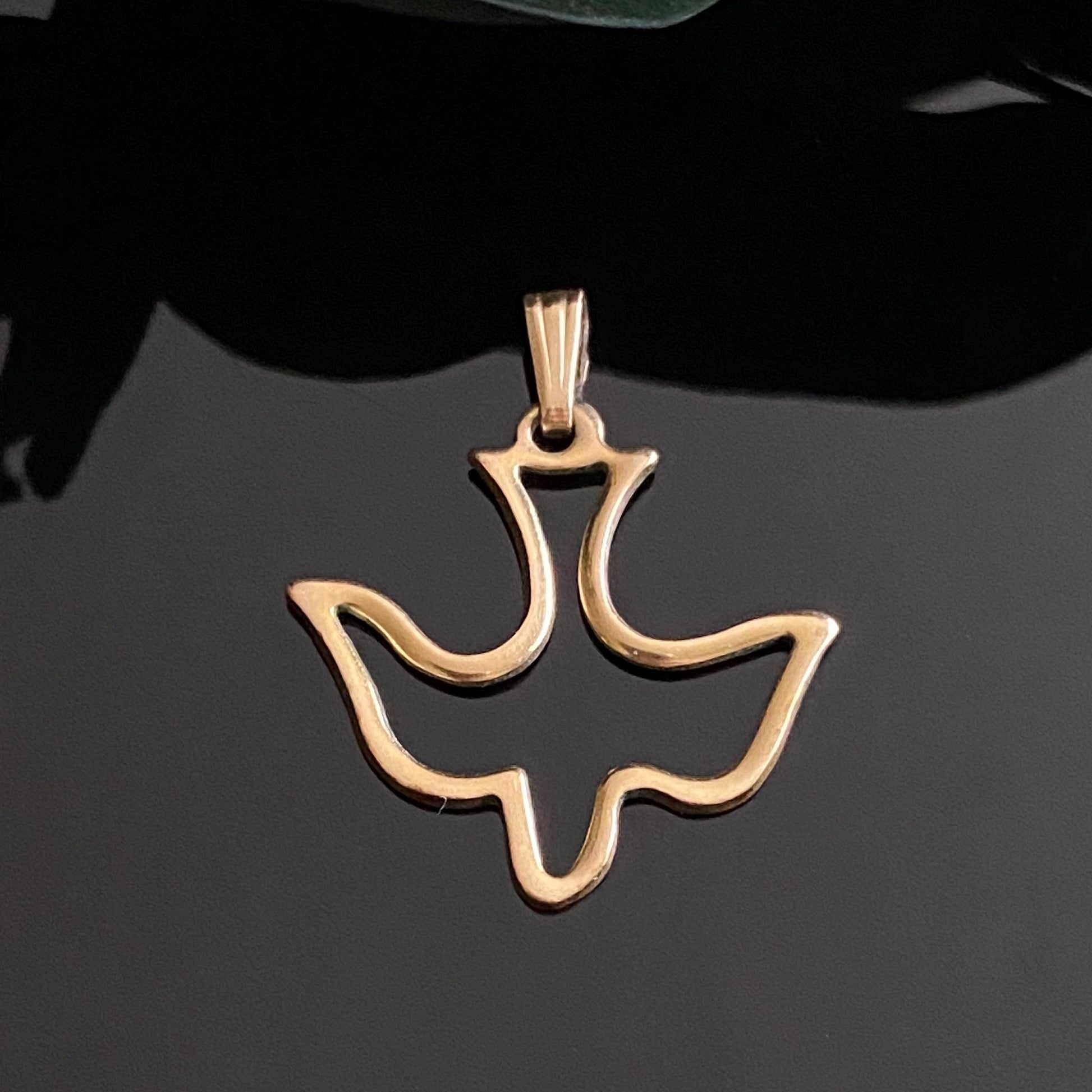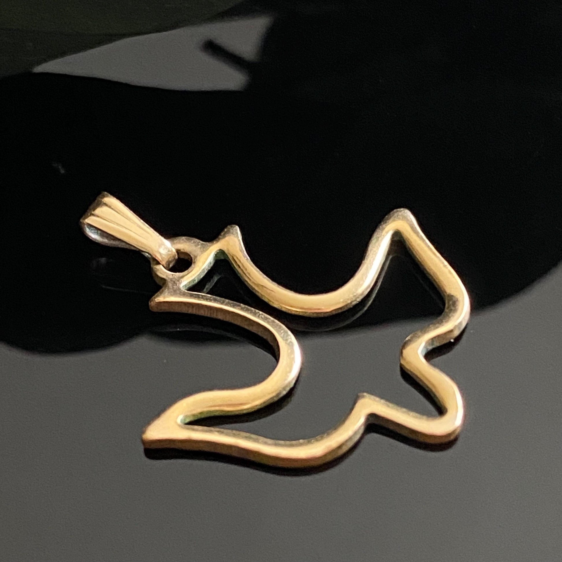 Antique or vintage gold filled dove cutout pendant, possibly depicting St. Esprit.